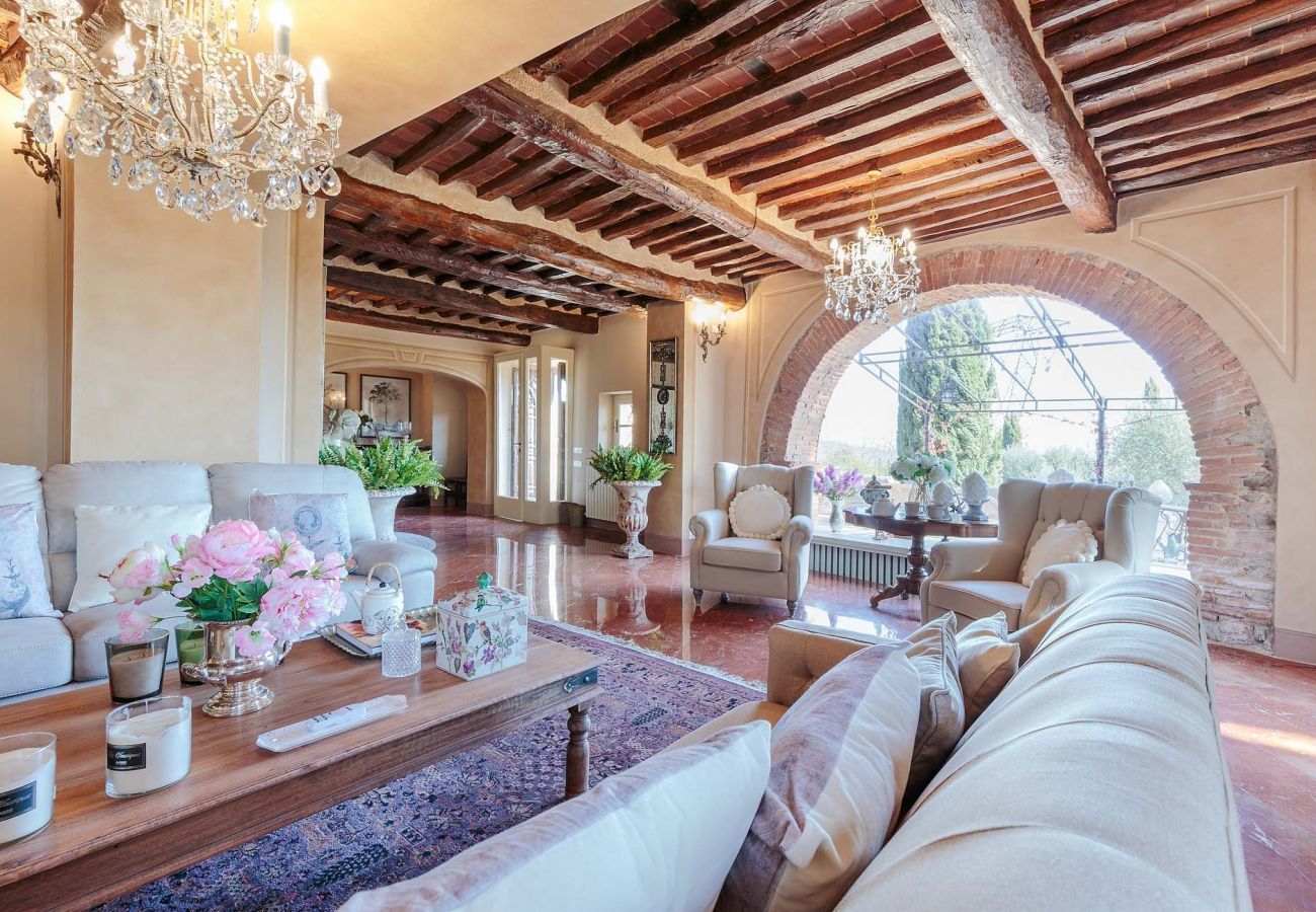The expansive estate inspires unforgettable ceremonies, festive gatherings, or serene relaxation under the Tuscan sky. Plunge into the welcoming swimming pool and bask in the sunlight on lovely lounge chairs. Sip Tuscan wine and delicious aperitifs at sunset in one of the many outdoor sitting areas, and gather for memorable meals amid the aromas of wildflowers and cypress.