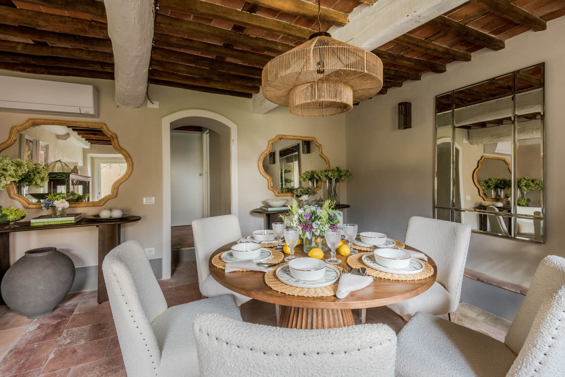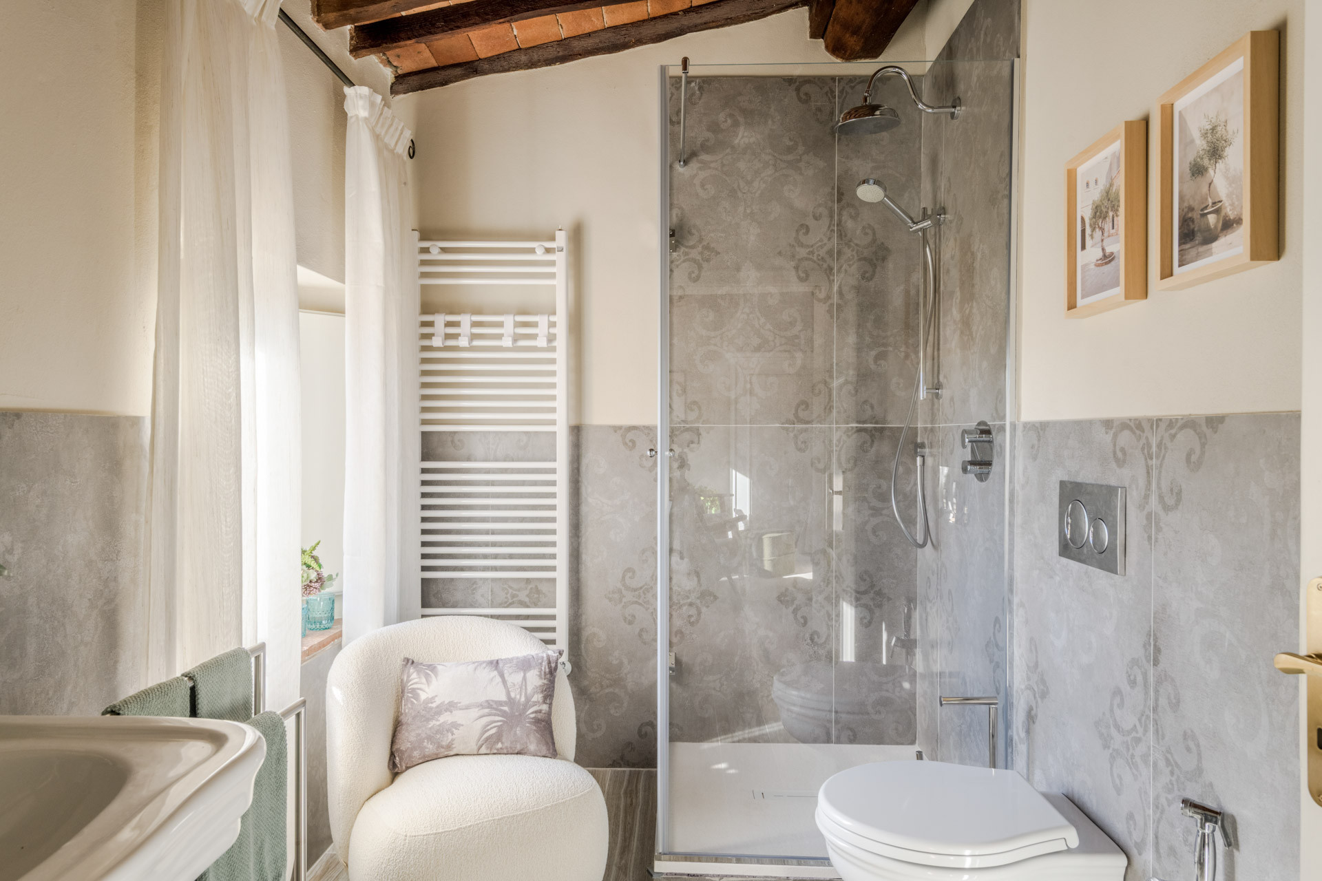 The cottage is nestled within a tiny, authentic hamlet where real Tuscan life still unfolds. Here, you’ll witness olive harvests by hand, old women tending their vegetable gardens with quiet devotion, and a wise old man strolling the lanes with his loyal dog, always wandering and looking for a gentle cuddle from the inhabitants of the hamlet. Life moves at a human pace, guided by tradition, seasons, and simple pleasures.
