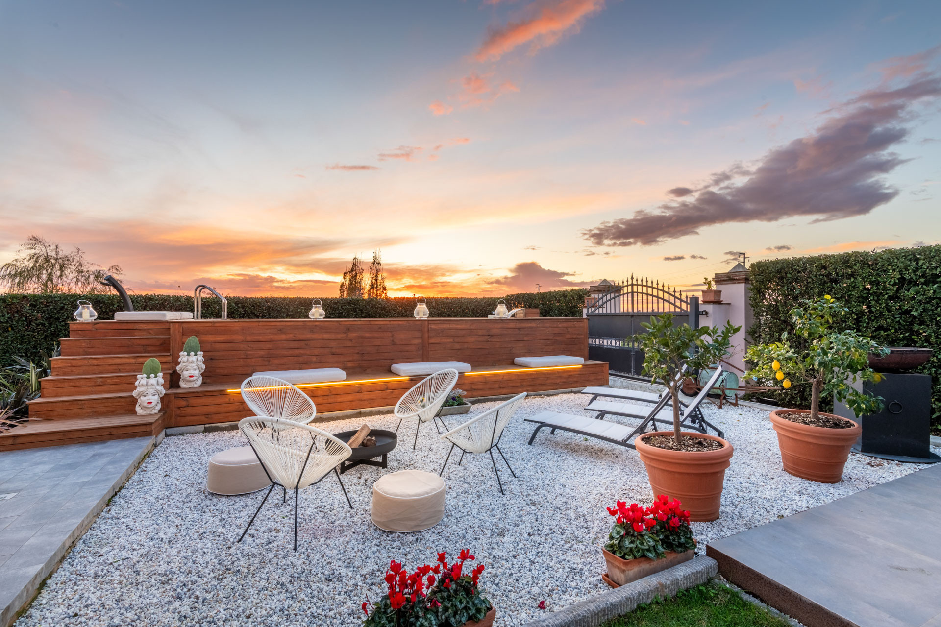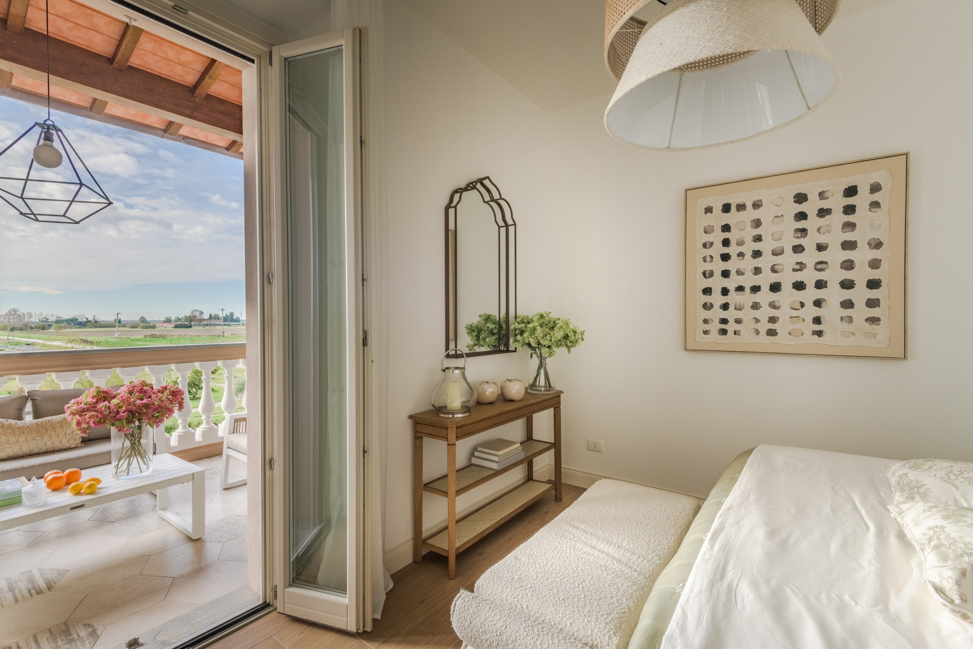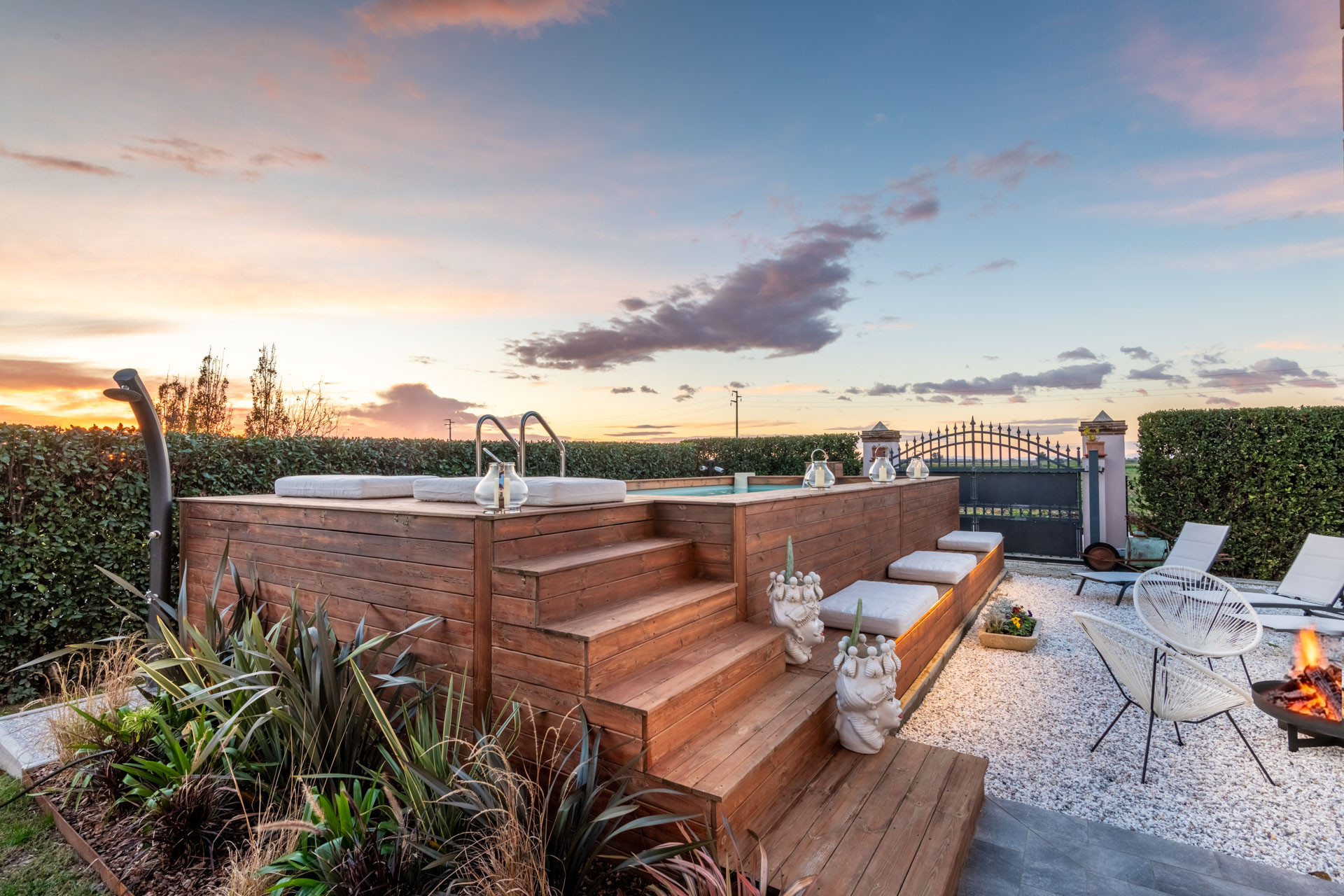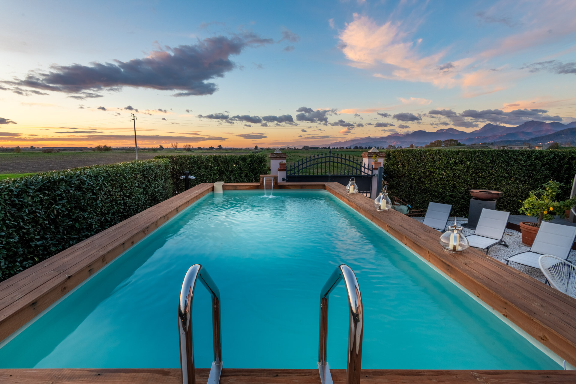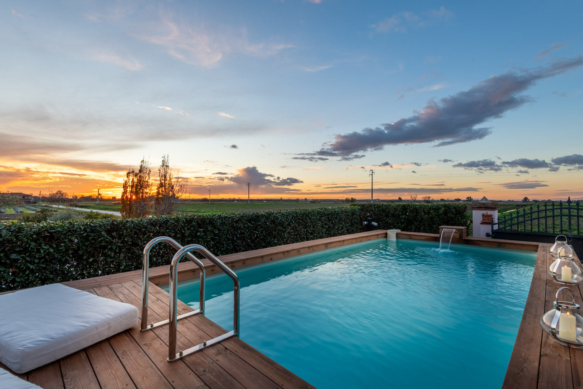 Das Leben in der Villa Bubi gleitet mühelos zwischen drinnen und draußen. Verbringen Sie Ihre Tage am privaten Swimmingpool, entspannen Sie sich auf luxuriösen Outdoor-Möbeln, während sich die Landschaft endlos um Sie herum erstreckt. Die Panoramaterrasse und die schattige Veranda sind perfekt für lange Aperitifs, Candlelight-Dinners oder einfach nur zum Beobachten des Sonnenuntergangs hinter den Feldern - Sonnenuntergänge hier werden nicht nur gesehen, sondern auch gefühlt.