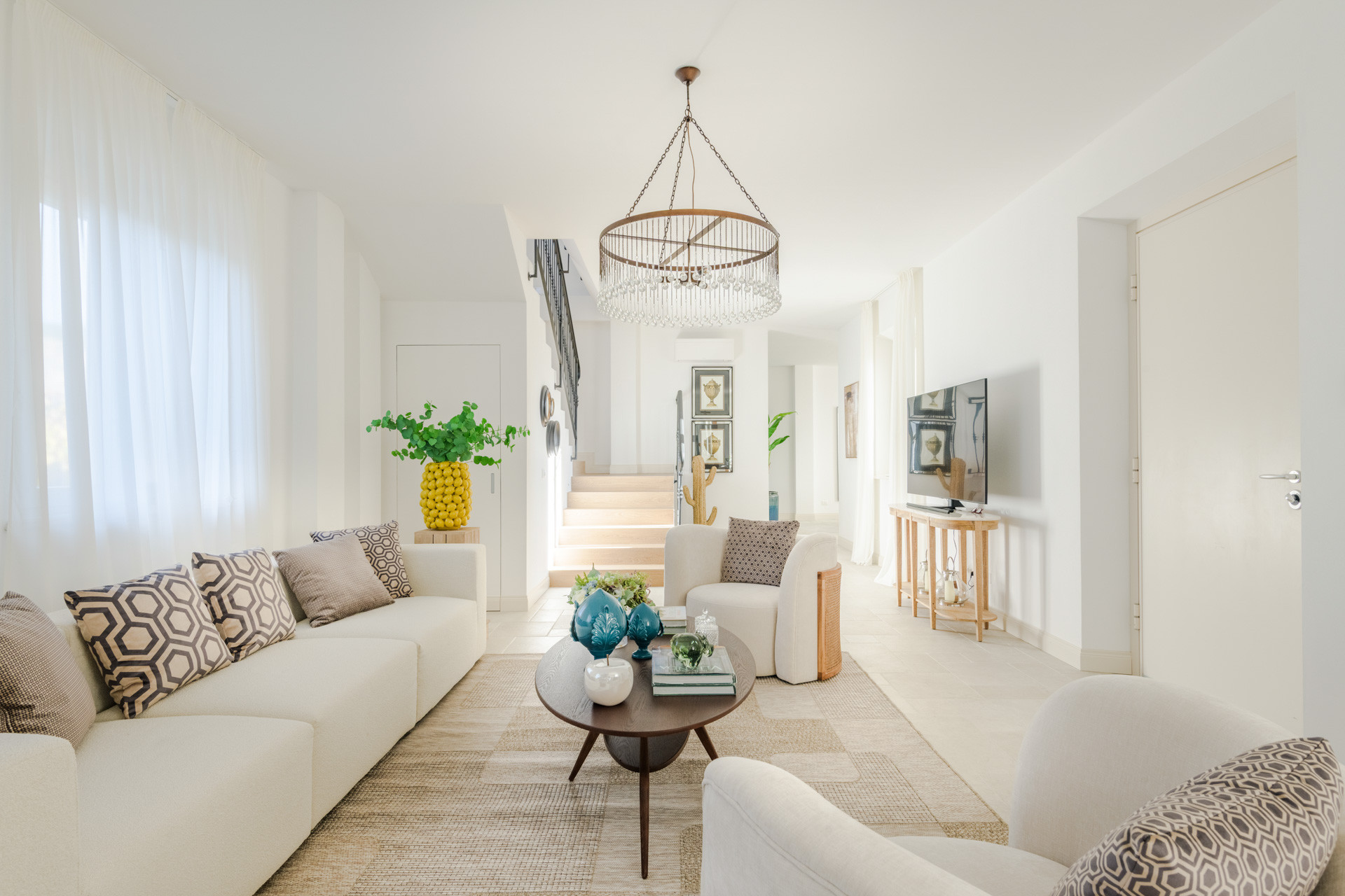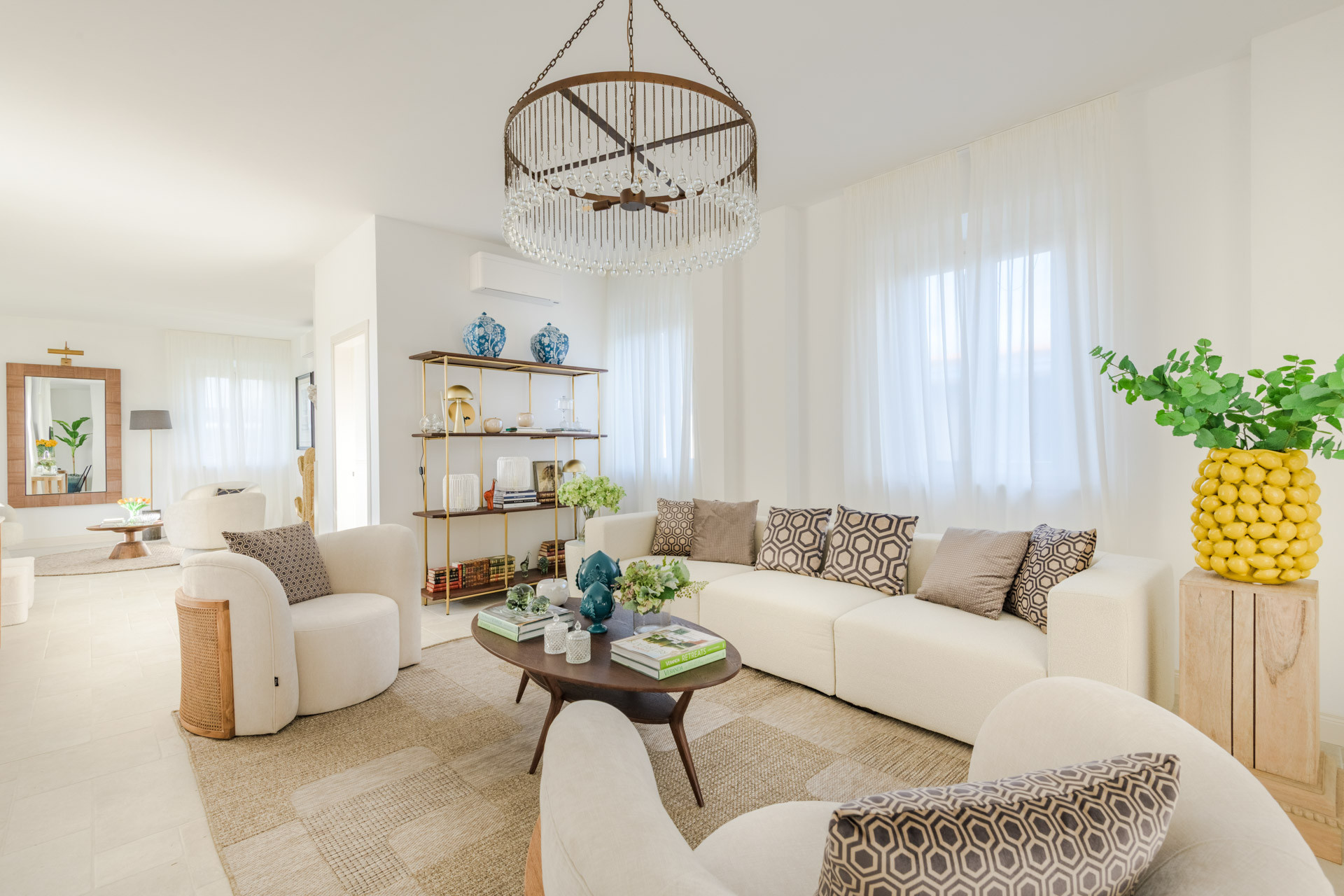 Kürzlich nach höchsten Standards renoviert, heißt Villa Bubi Sie in eleganten, lichtdurchfluteten Räumen willkommen, die durch maßgeschneiderte Einrichtungen und modernste Designelemente definiert werden. Die Villa verfügt über fünf luxuriöse Hauptschlafzimmer, die jeweils mit einem exquisit ausgestatteten Badezimmer ausgestattet sind und jedem Gast Privatsphäre, Ruhe und verwöhnenden Komfort bieten.
