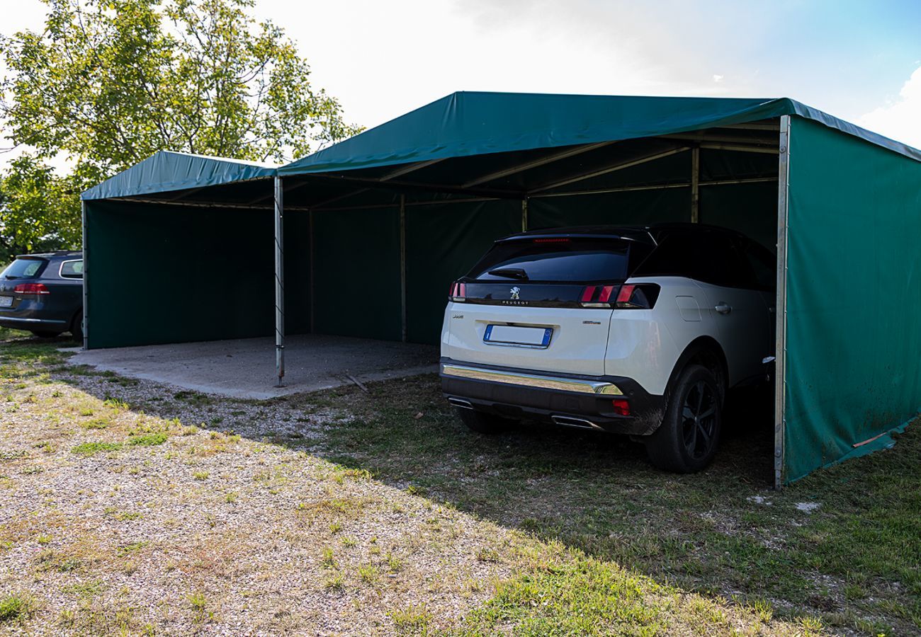 The apartment consists of a bright living area with a kitchenette with gas hob, refrigerator and freezer, dishwasher, electric/microwave oven, kettle, toaster and coffee machine. Wooden table in country chic style suitable for hosting up to 6 people. A comfortable double sofa bed (recommended for one adult or two children) and a reading armchair complete the living room. Air conditioning, satellite TV and wifi available for guests. Double bedroom with wardrobe, small bedroom with bunk bed and wardrobe. Windowed bathroom with shower cabin and convenient washing machine. A covered parking space within the complex available, access manoeuvre with limited space (width 235 cm, height 200 cm, depth 600 cm). Cellar where bicycles can be parked safely, sun loungers available for guests for use in the pool (swimming cap mandatory - pool use guaranteed 15/06-15/09 - open only during lifeguard hours 11.00/13.00 and 15.30/19.30). Pets not allowed, non-smoking apartment.