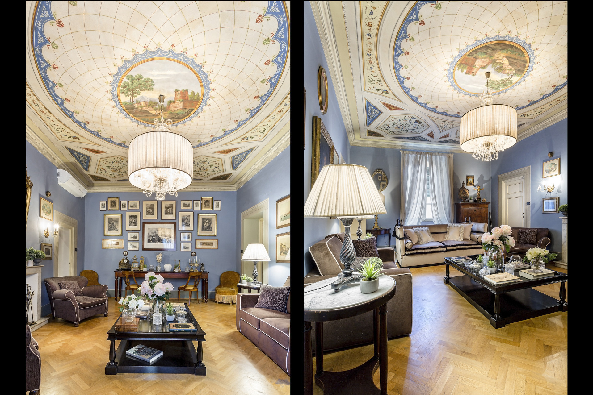 Frescoed ceilings and marble chimneypiece speak to the city’s architectural history, but modern pieces place it in the now. It’s less than a 5-minute walk to both the medieval splendour of St.Michele Square and the famous Anfiteatro which are the Lucca landmarks as well as the Guinigi Tower, Antique Market, Train Station and public car Parking.
