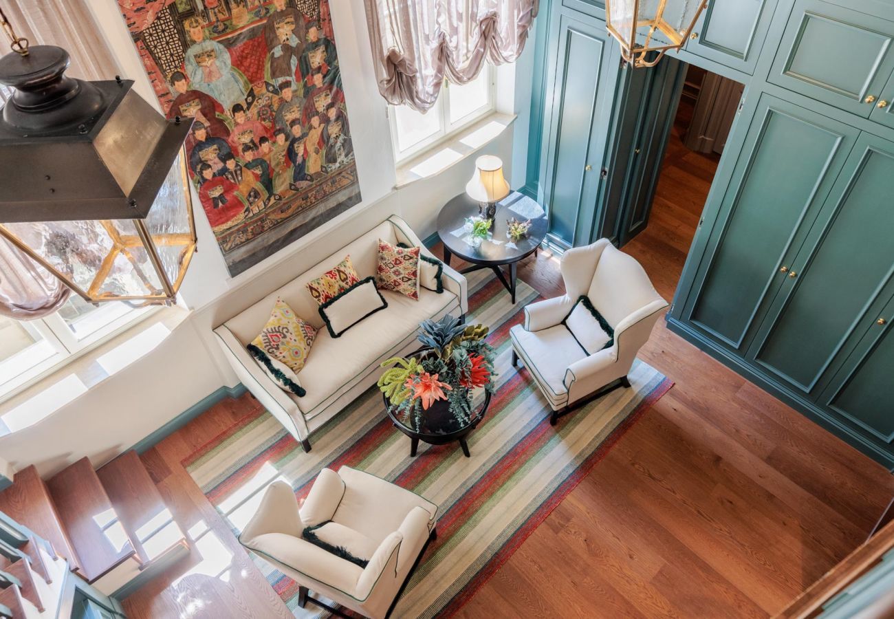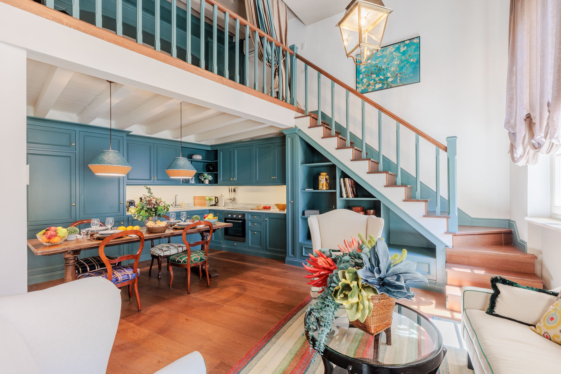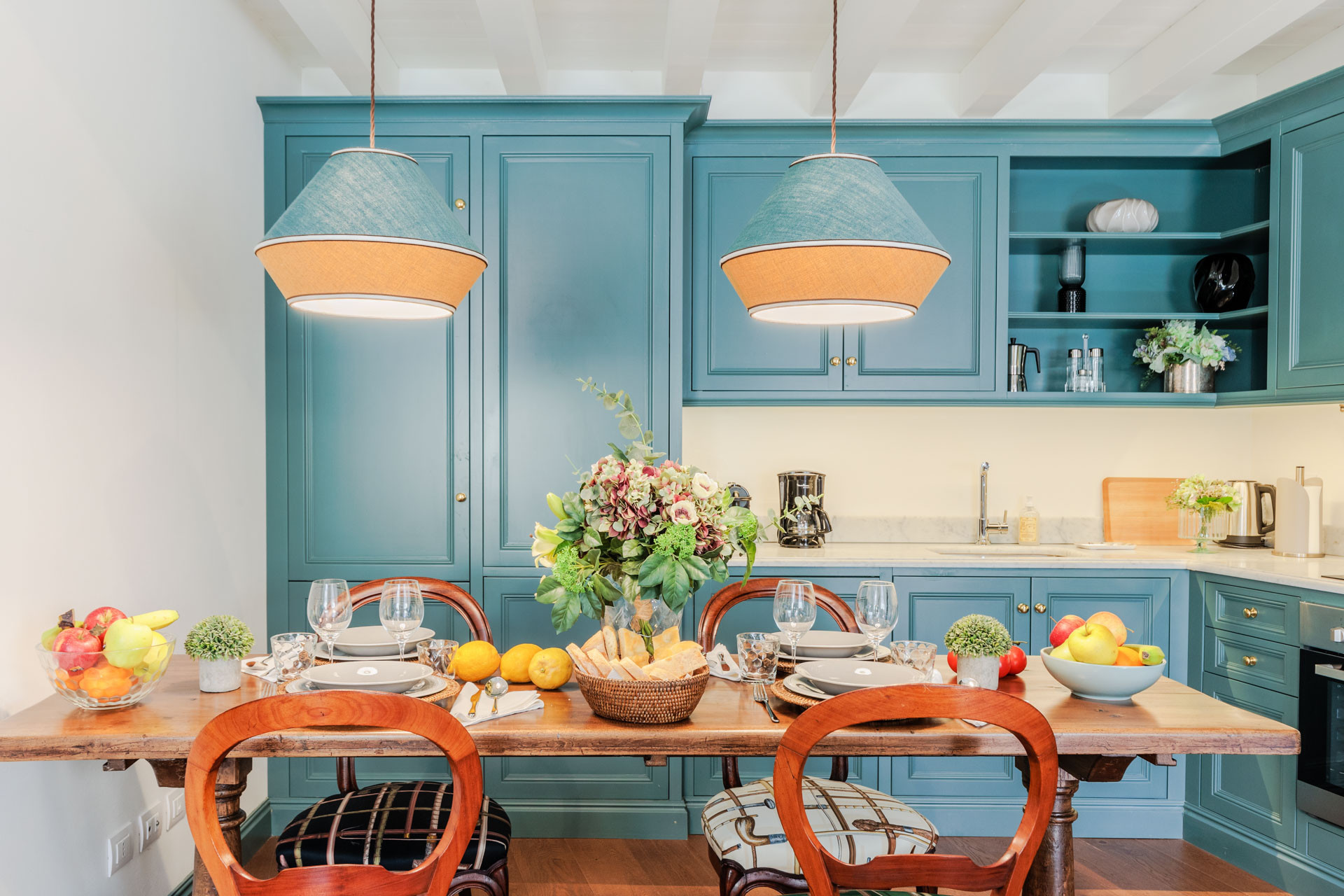 Murano glass chandeliers hanging from wood-beamed ceilings and richly patterned area rugs on the floors give this vacation rental a sense of traditional grandeur. But there’s modern flair in the living and dining rooms, too, thanks to a sophisticated velvety patterns. And the fully equipped kitchen is all contemporary, featuring a wide selection of appliances and cooking utensils that will enhance the cooking experience like a pro.