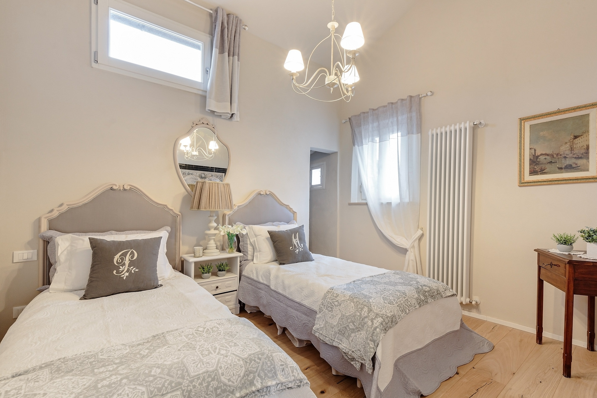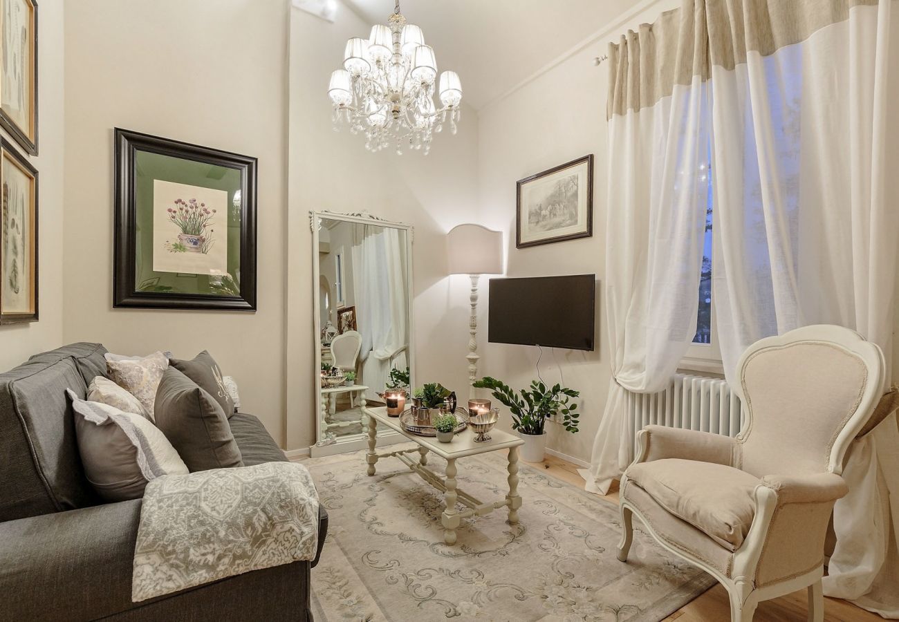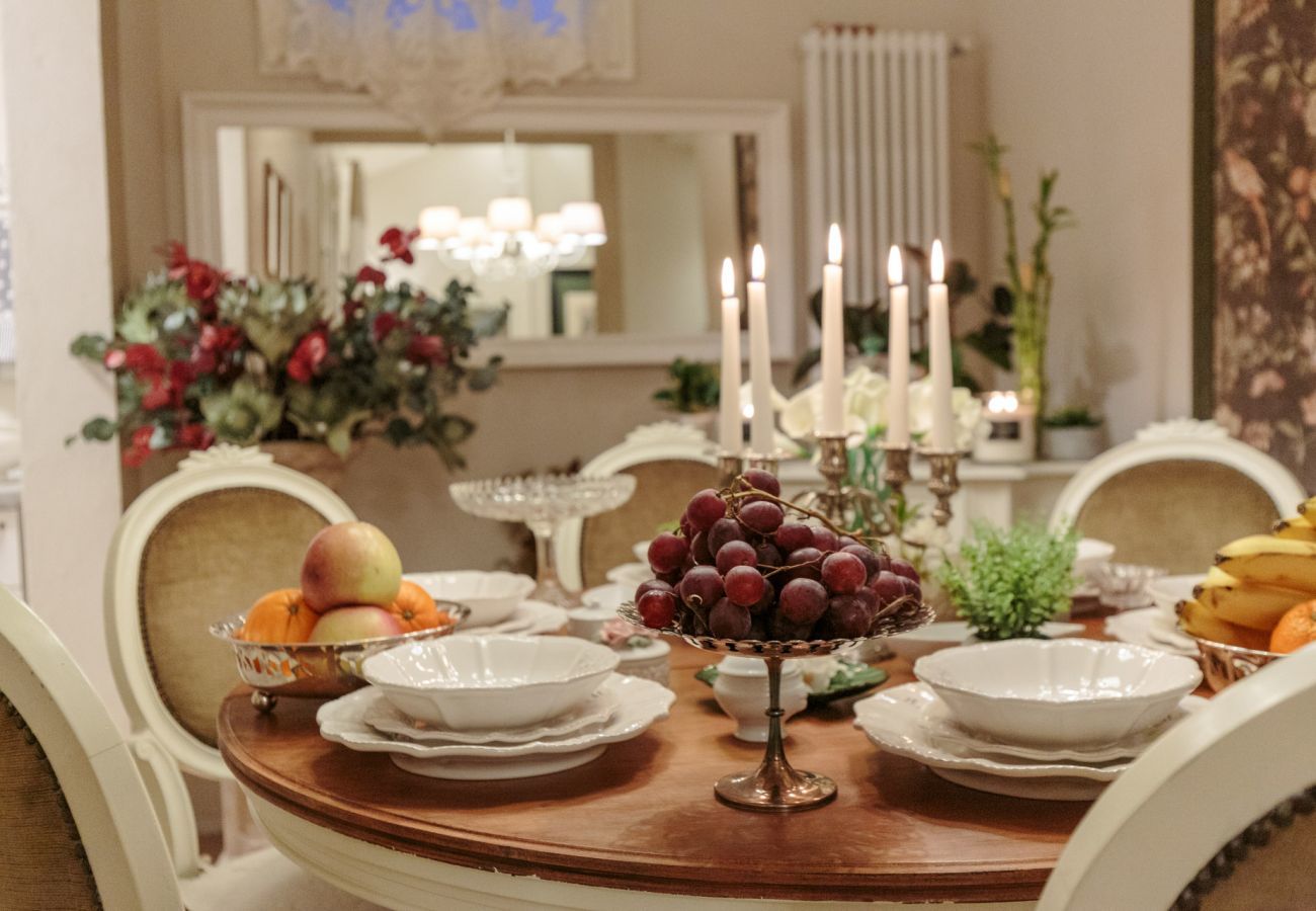 Perfect for a romantic holiday for two couples or a small family, this inspiring apartment combines contemporary comfort with historical charm. Located on the third floor of an antique building, the accommodation includes a master bedroom with a dressing room and a romantic desk/study, a bathroom, a bedroom with two twin beds, a walk-in wardrobe, a living room, an open-plan fully equipped kitchen, and a separate dining room.