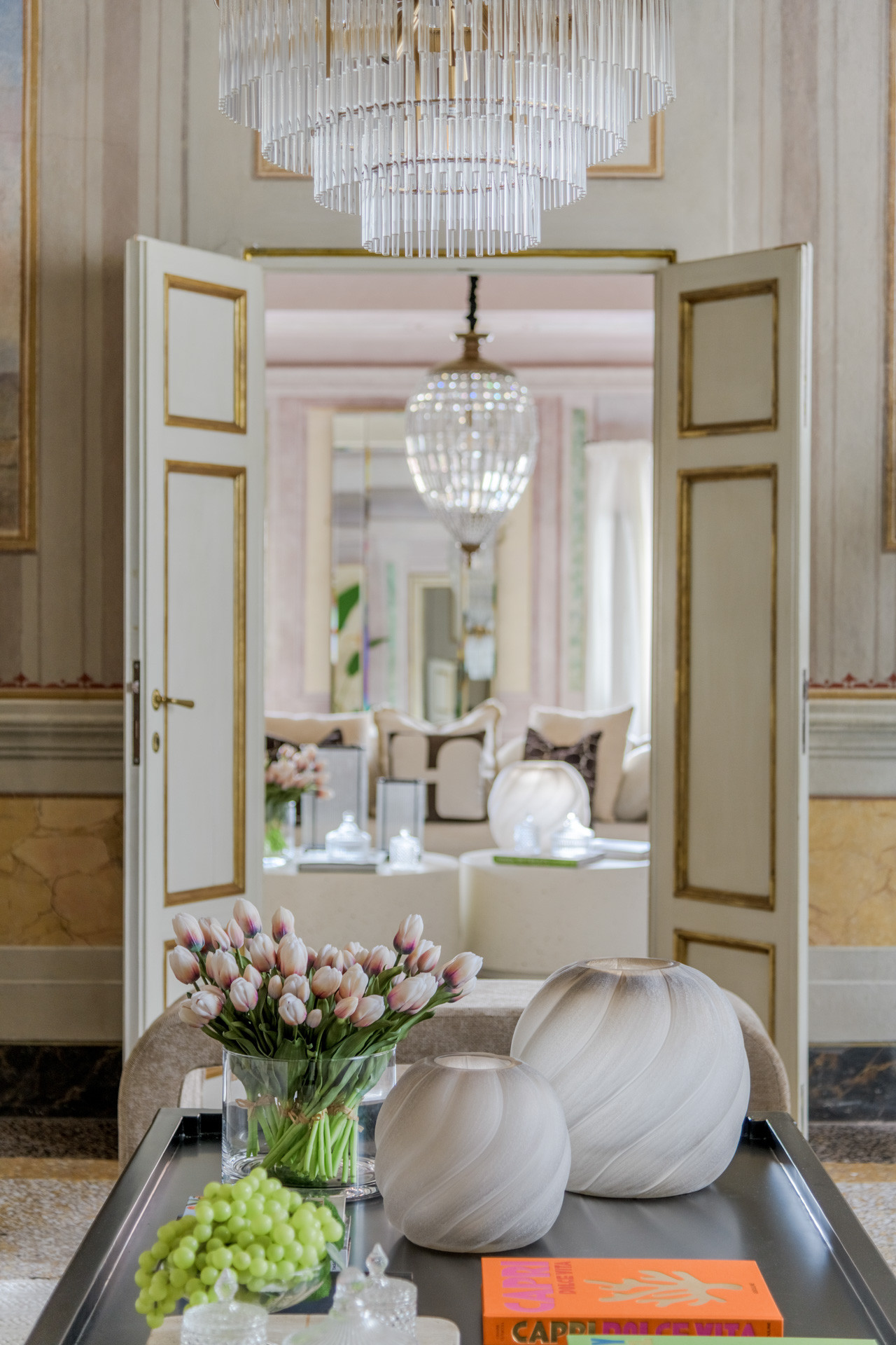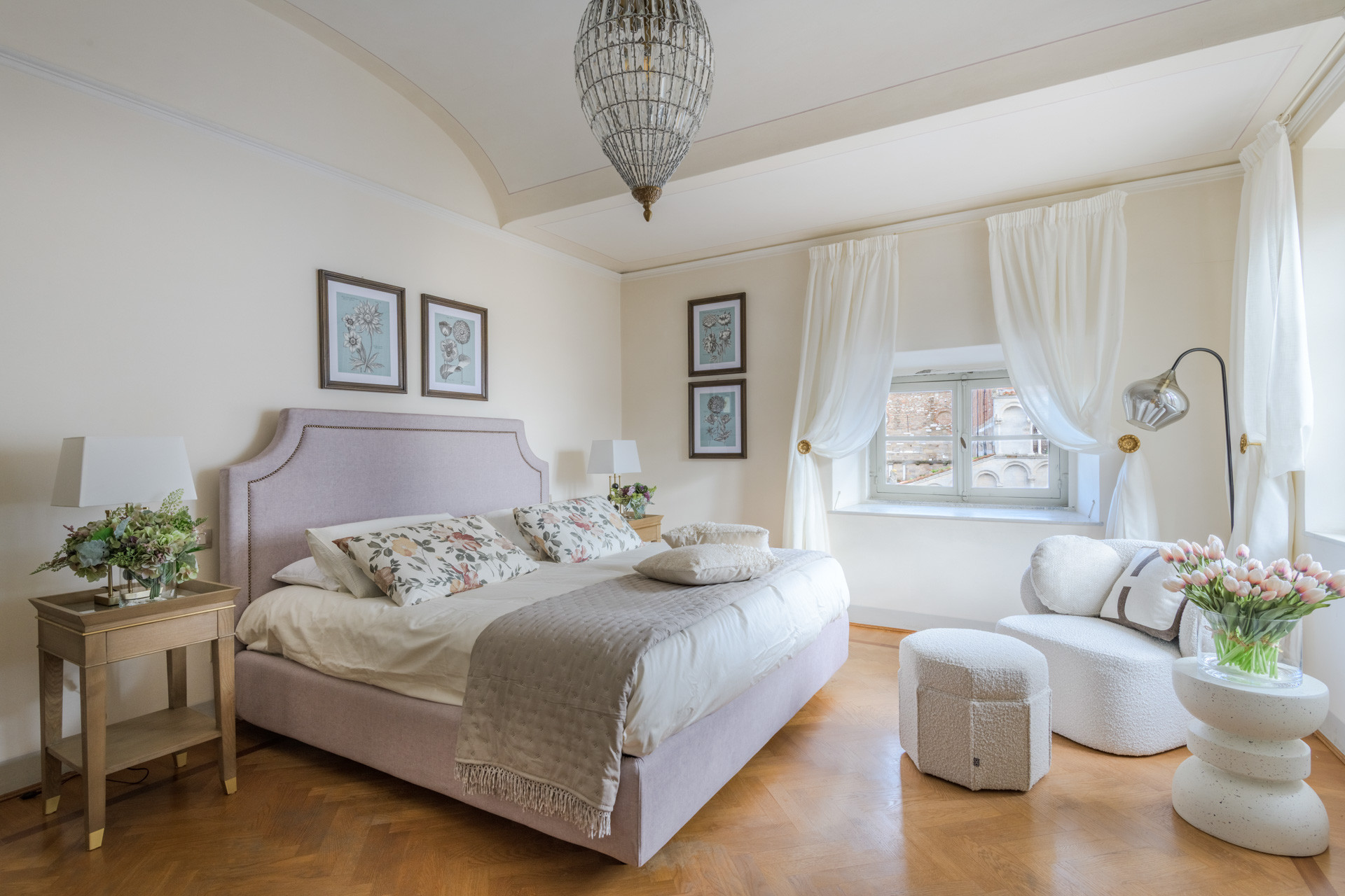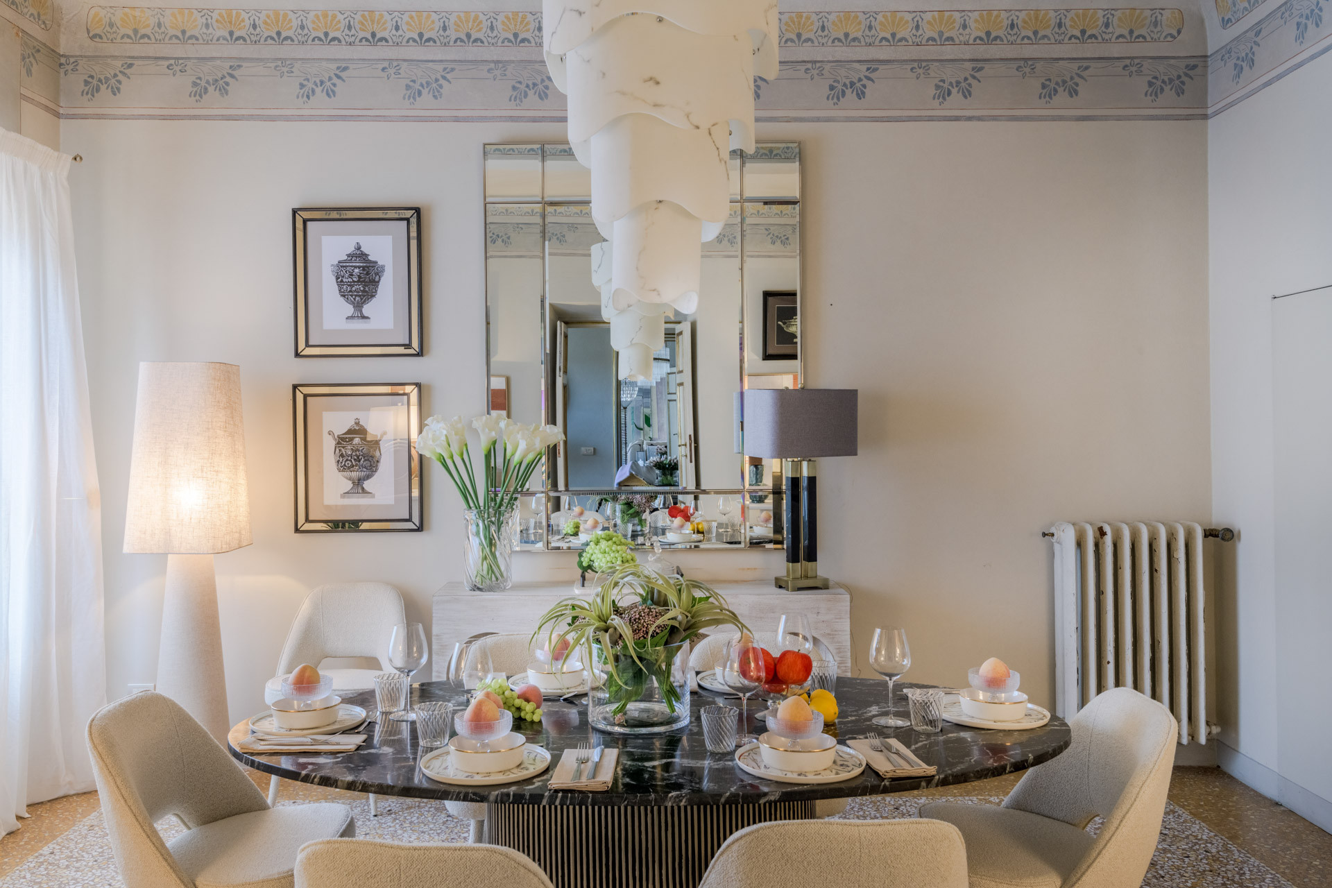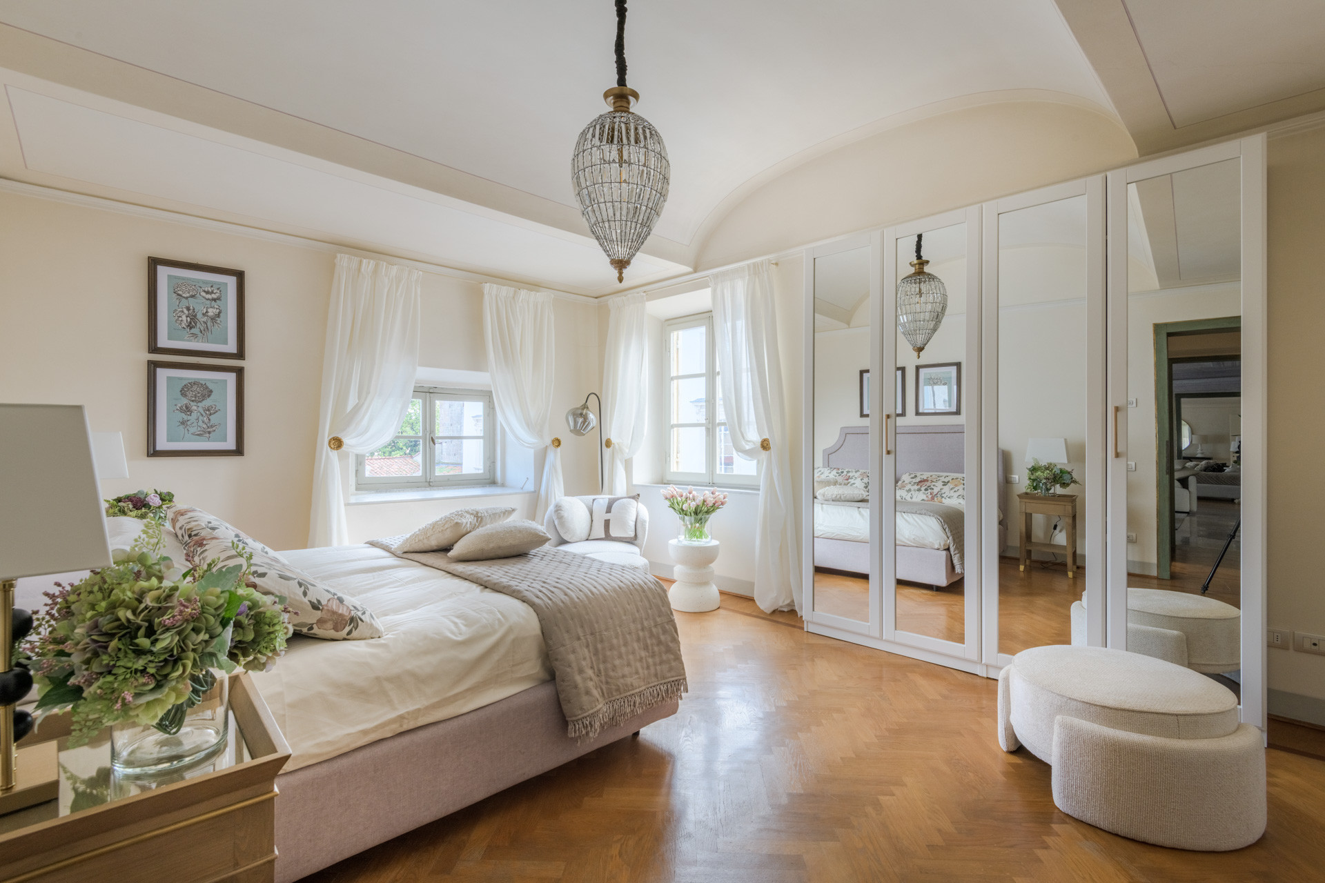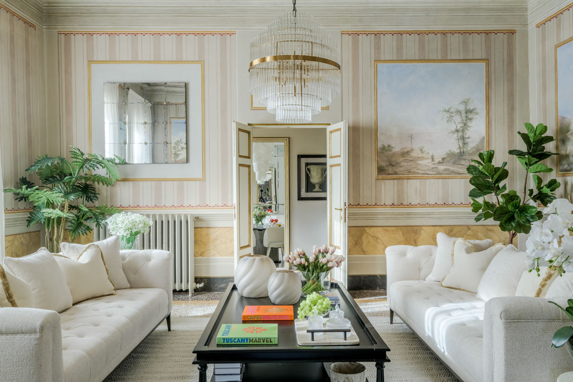 The spacious rooms of this historic palace still preserve their original early-19th-century decorative paintings, lending an authentic sense of grandeur and history. These artistic details have been carefully enhanced by the renovation, which introduces modern comfort, advanced systems, and discreet luxury—allowing the past and present to converse effortlessly.