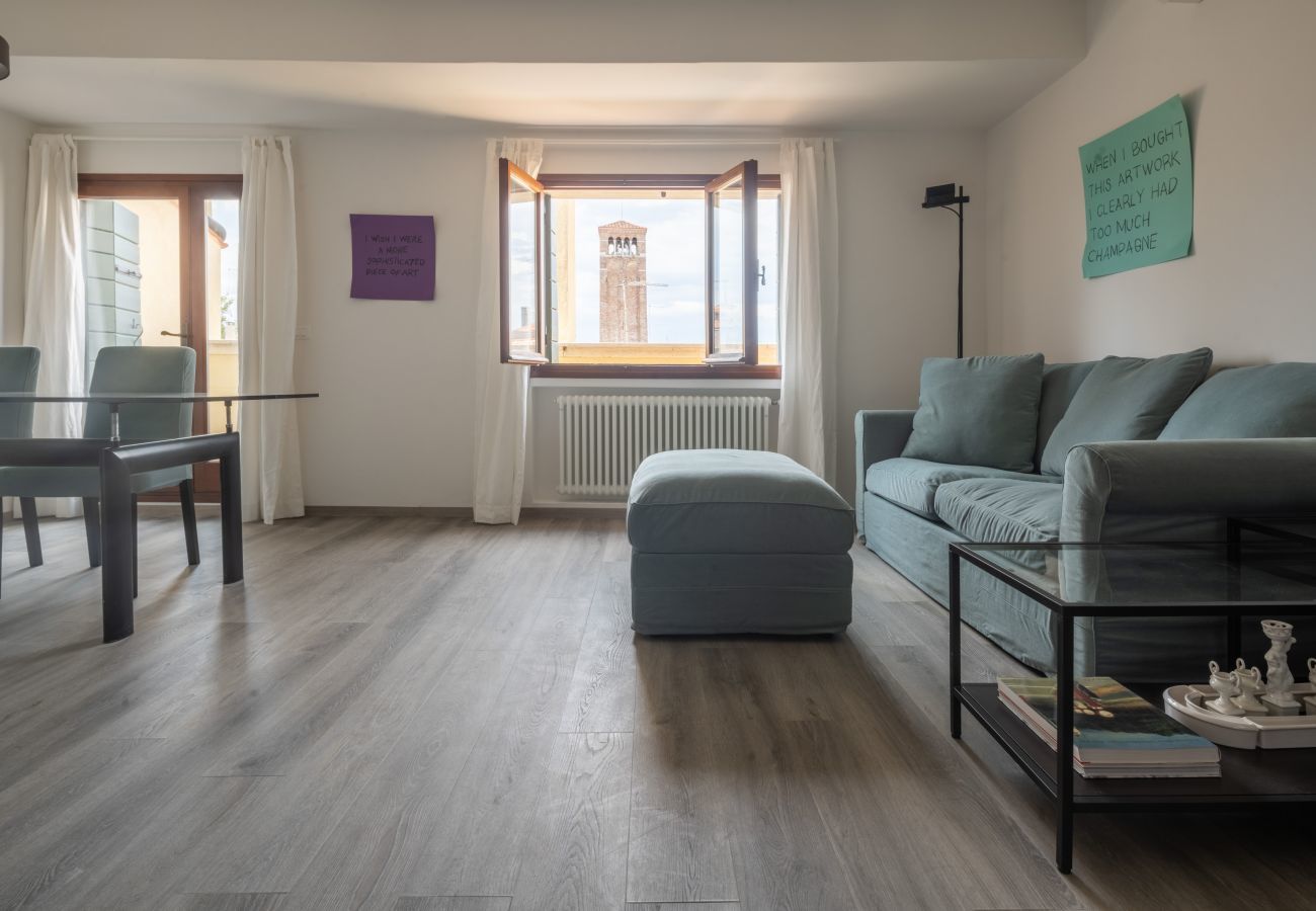 This bright, newly renovated apartment is located on the third floor of a building just a stone's throw from Campo San Giacomo dall'Orio.