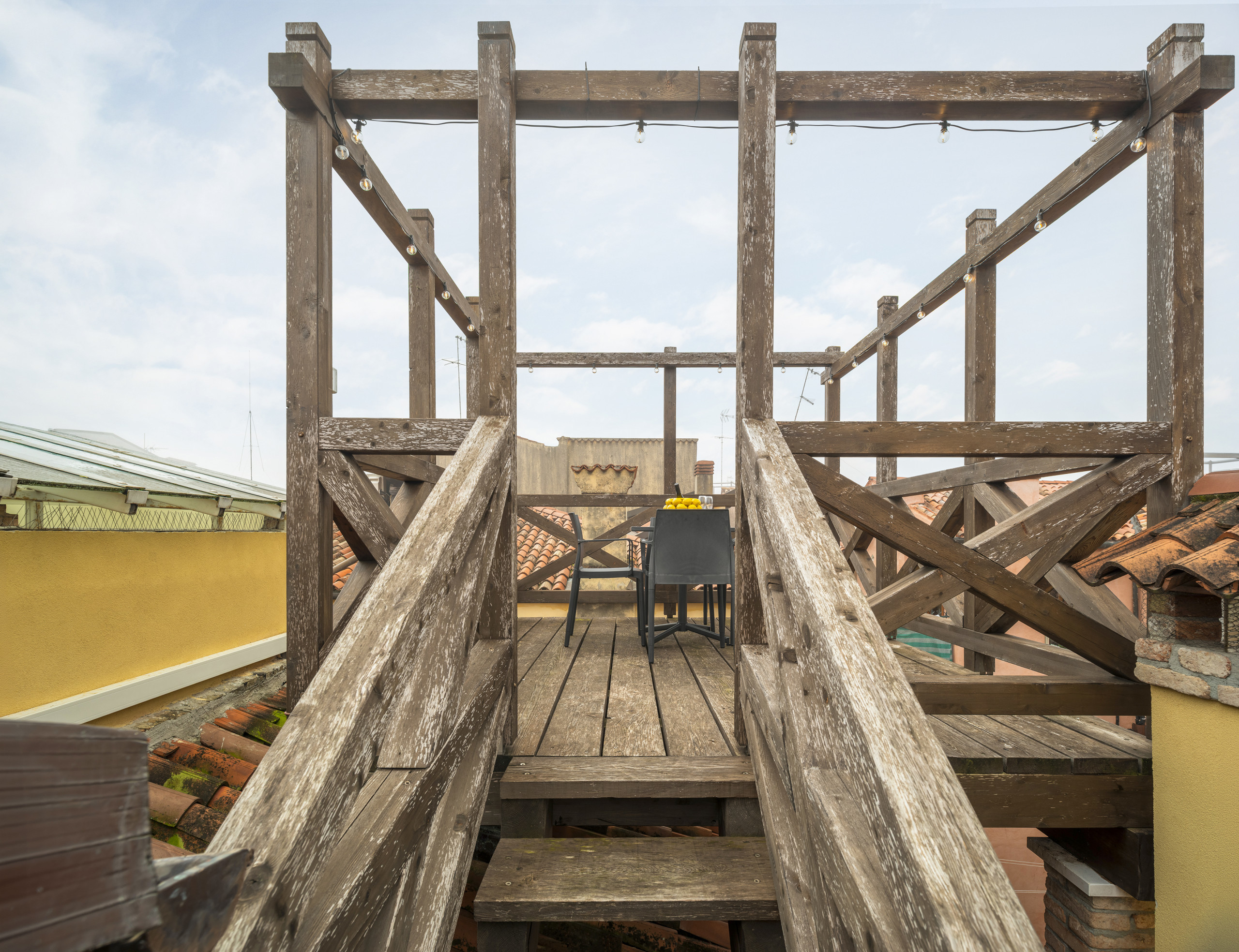 Discover the charm of Venice by staying in this elegant duplex apartment, located within a splendid recently renovated condominium and equipped with a lift, a rare convenience in the city. The apartment is spread over two levels. On the first floor, you will find a welcoming living room with a sofa bed, a fully equipped kitchen and a bathroom. Going up to the upper floor, a refined double bedroom awaits you with a toilet and a hydromassage bath in the room, ideal for giving yourself moments of pure relaxation. What makes the experience truly unique is the magnificent altana, from which you can enjoy a breathtaking view of the roofs of Venice.