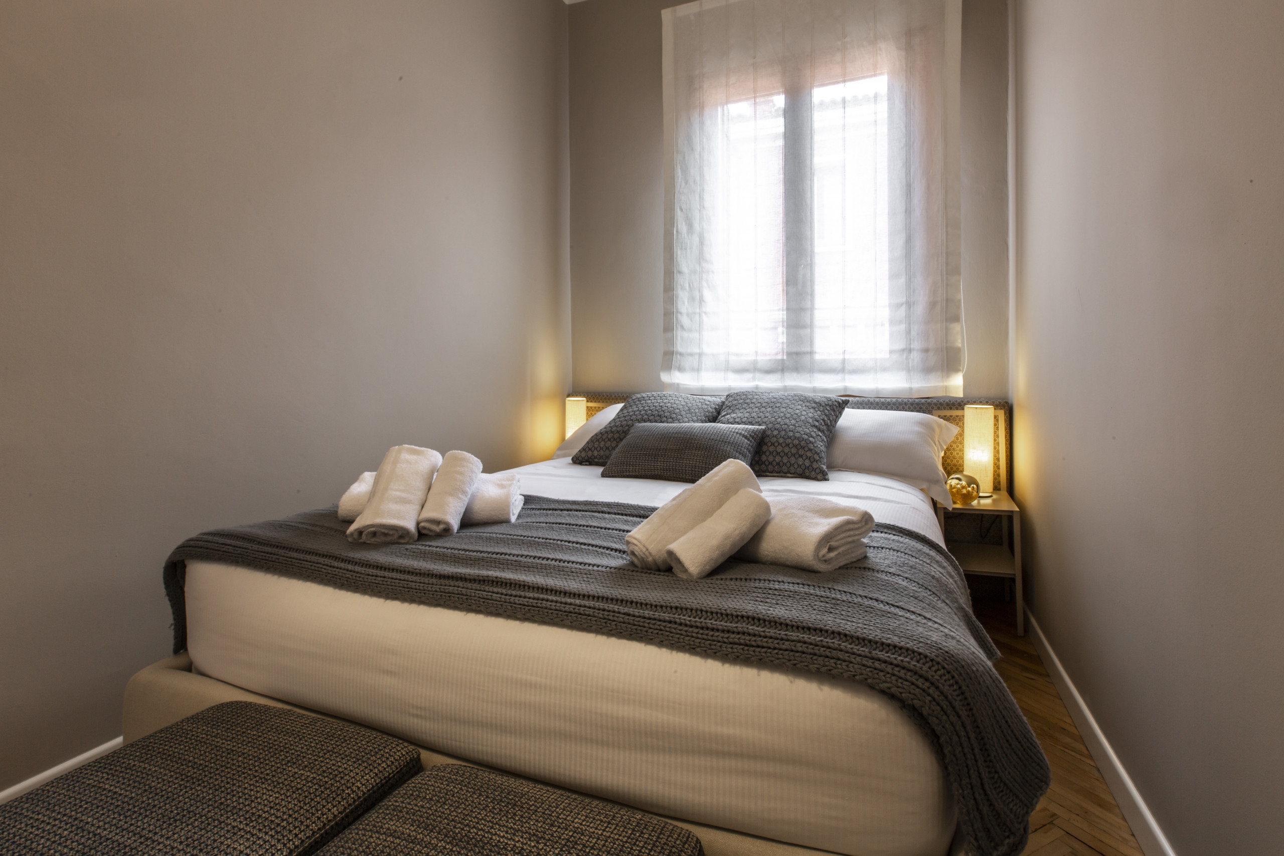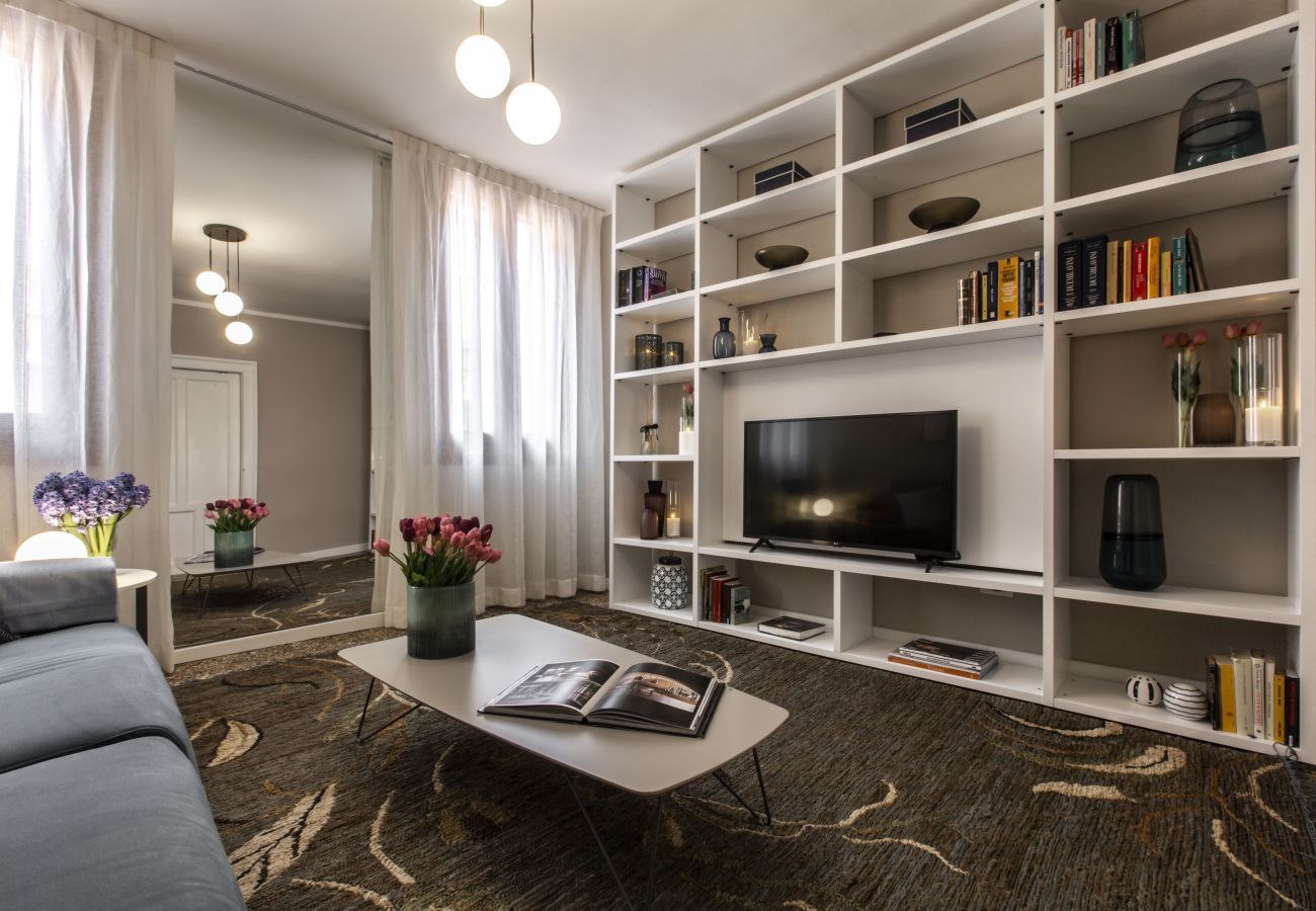 The apartment features Venetian and wooden floors that pleasantly contrast with the modern design of the furniture. To help you feel at home after a long day exploring the city, you will find all the comforts you need such as Wi-Fi access, air conditioning, iron, hairdryer, Smart TV, as well as a fully equipped and functional kitchen.