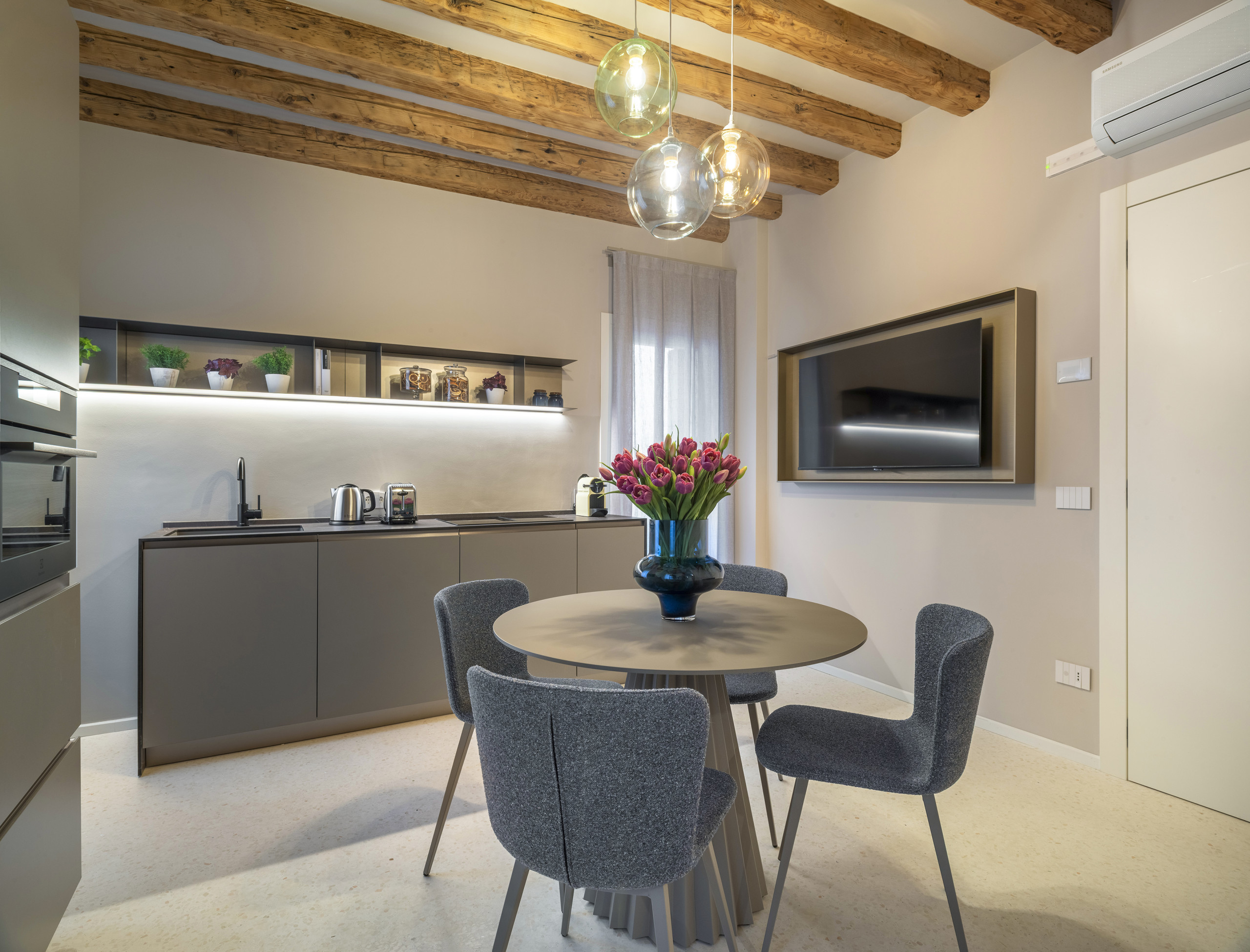 The spacious private terrace is perfect for relaxing outdoors, while the shared external courtyard offers an additional pleasant space. Located just steps from Campo Santa Maria Formosa, in a convenient and well-connected area, it is ideal for easily visiting the city and returning home to a tranquil atmosphere. The published price includes the commissions that are the responsibility of the guest.