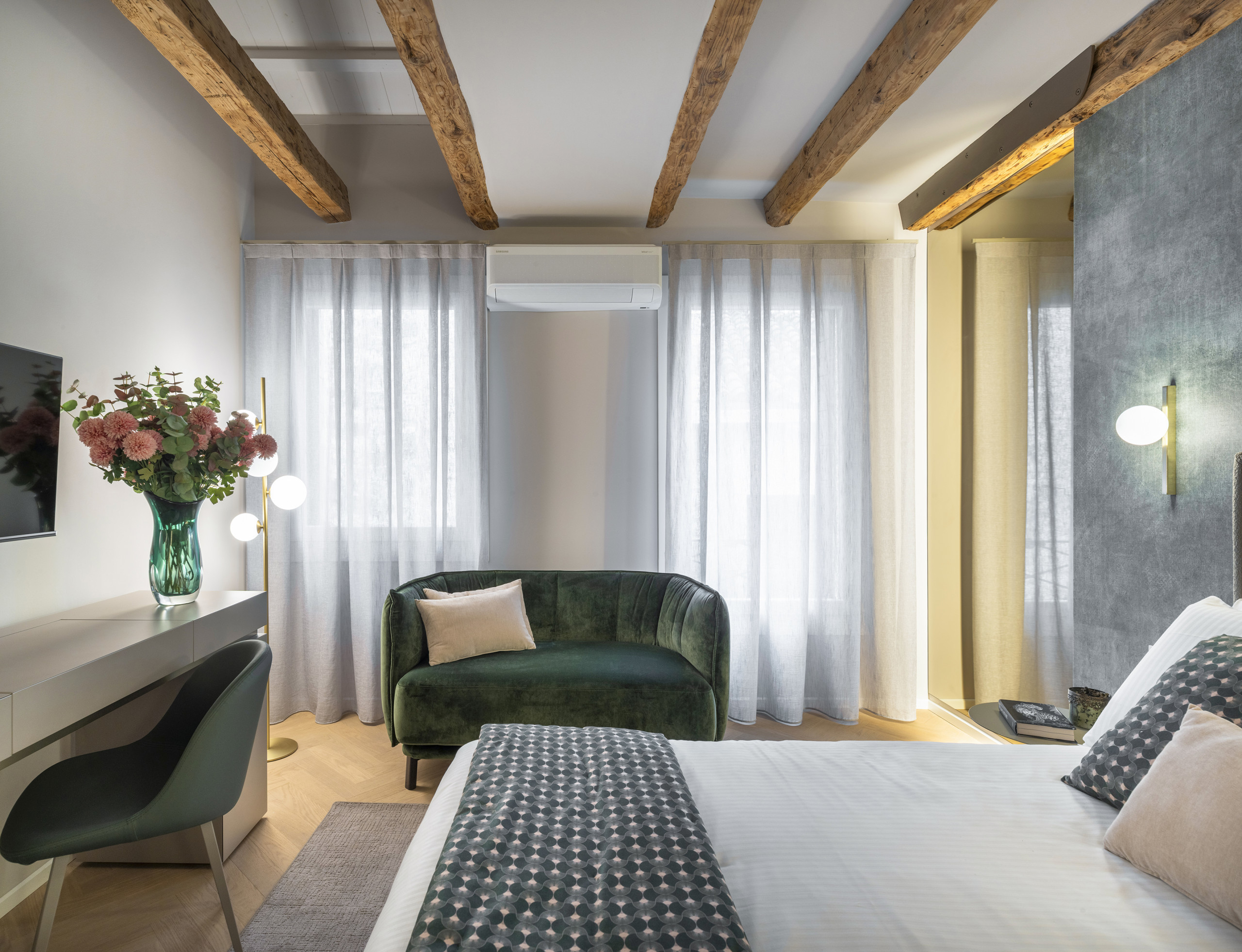 Elegant apartment recently renovated, located a few steps from Campo Santa Maria Formosa. It features two bedrooms, both with en-suite bathrooms, furnished with a refined and elegant style. Bright and comfortable spaces, ideal for a relaxing stay in the heart of Venice. Guests also have access to a pleasant common outdoor area.