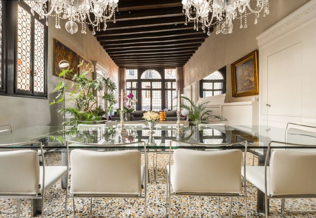 This elegant noble floor within Palazzo Soranzo dell'Angelo (1400) is located in Rio della Canonica, known for the Bridge of Sighs, the bridge connecting Doge's Palace to the prisons, which you can see from a corner of the balcony overlooking the canal.