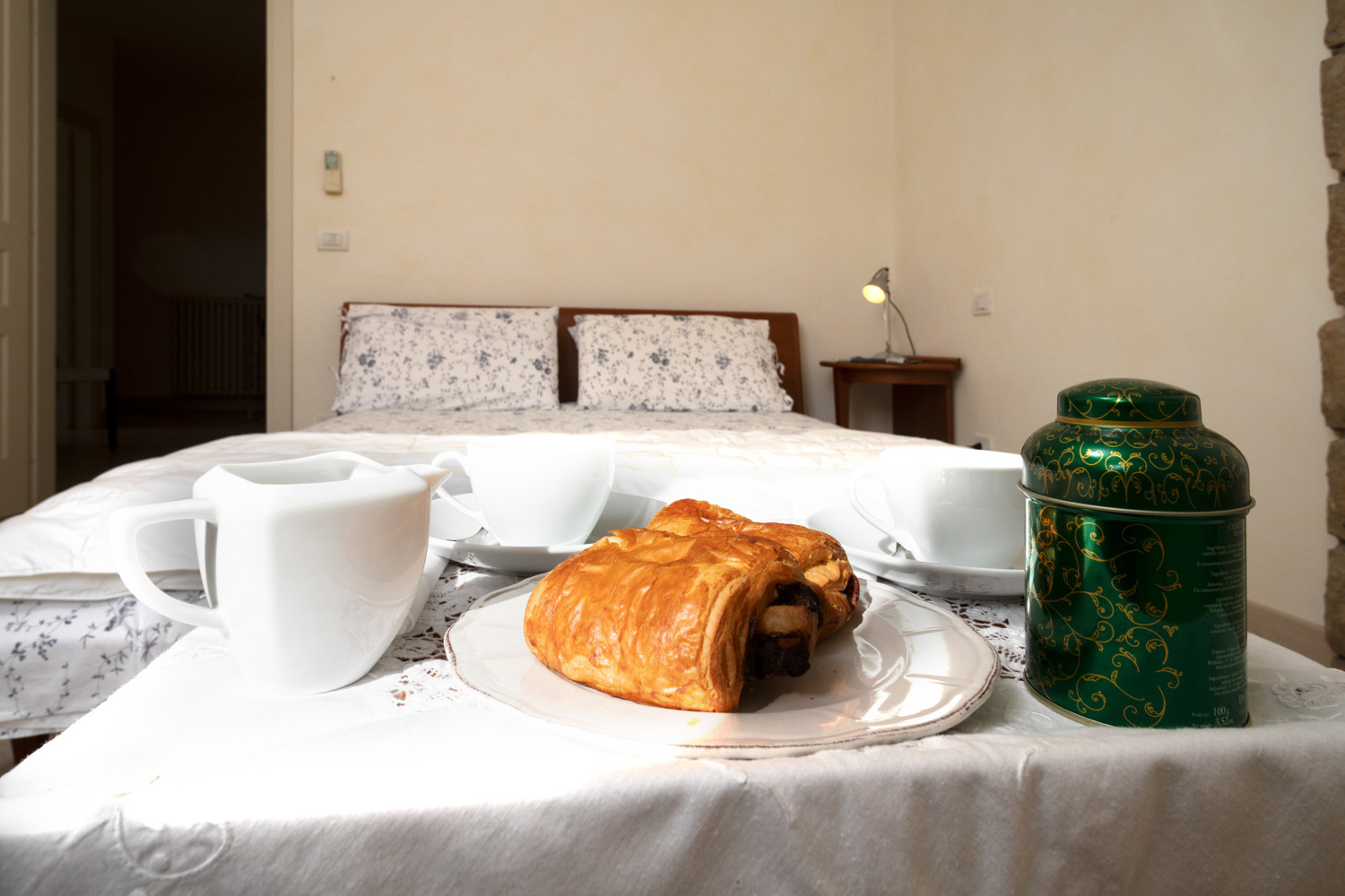 The basement is reserved for the Family Suite, a large bedroom with a double bed and two single beds, separated by a wooden partition to ensure greater privacy. There is also a third bathroom with shower available to guests.