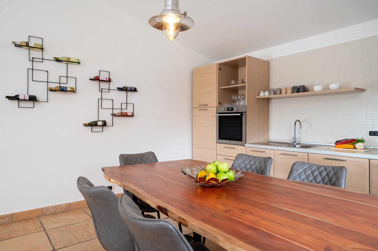 The villa is surrounded by a large private garden, ideal for enjoying the outdoors in complete privacy. The barbecue area and outdoor furniture make it pleasant to dine al fresco, while the furnished veranda and the 45 m² private pool offer exclusive spaces to unwind. The surrounding hills create a serene and relaxing atmosphere—perfect for a regenerating holiday.