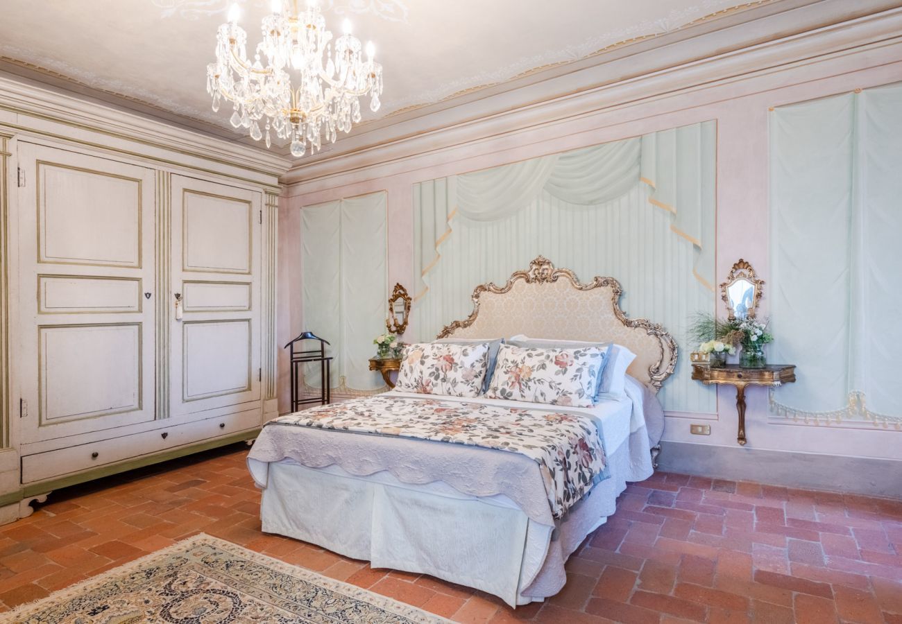 The villa’s charm lies in its harmonious blend of historic elegance and contemporary luxury. Every room boasts original furniture, including a historic wine cellar where wine barrels set the scene for private tastings. Traditional kitchens and cozy fireplaces complement brand-new king-size beds and state-of-the-art air conditioning, ensuring complete comfort throughout the entire villa.For relaxation, the large pool (13m x 6m), complete with a jacuzzi, invites you to unwind under the Tuscan sun, with the peaceful gardens as your backdrop.