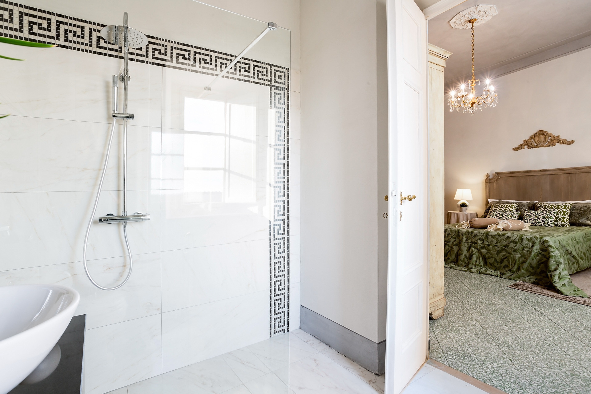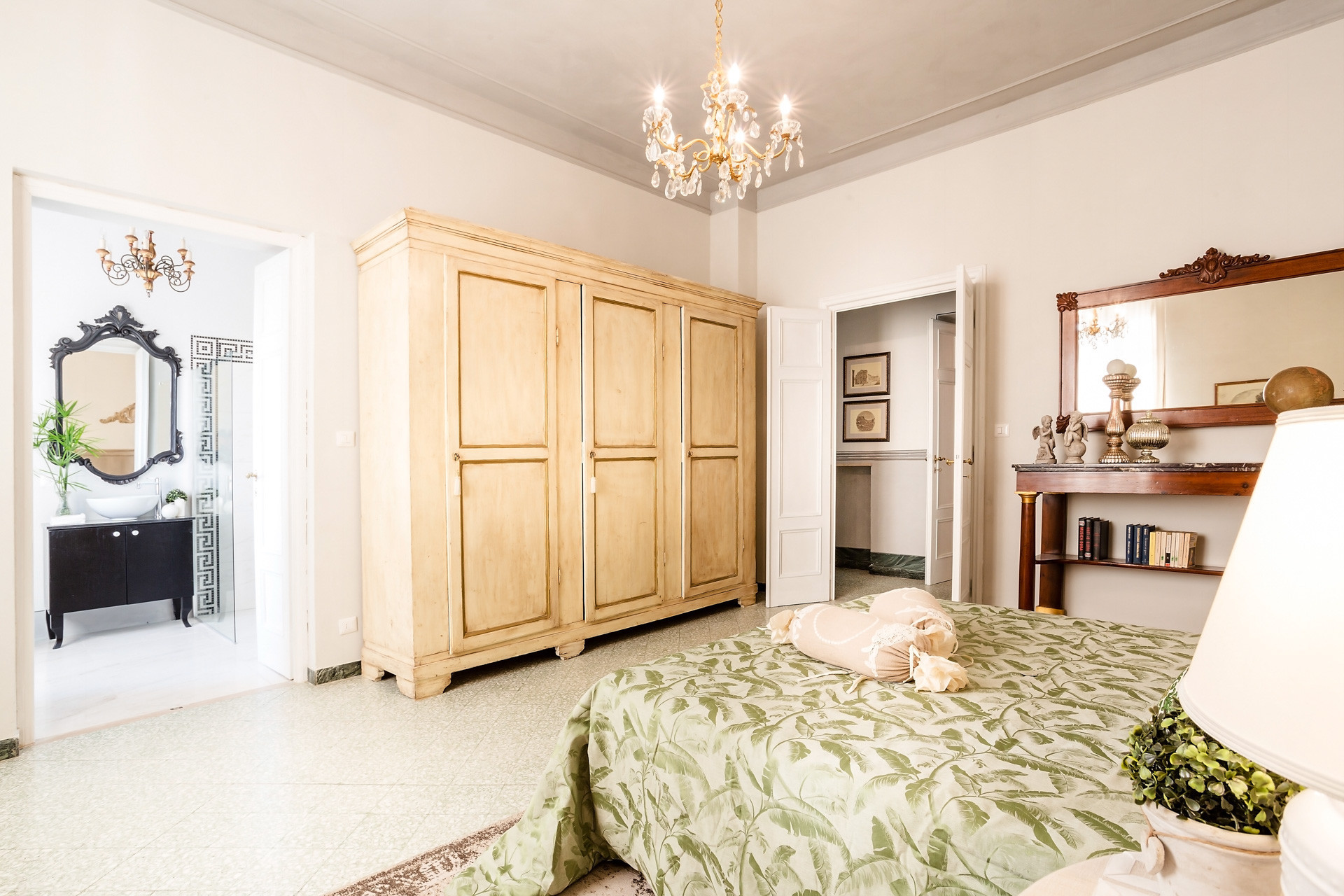 The villa features 4 bedrooms in its main floor—three with double size beds, one with two twins—all with closets and ensuite bathrooms of travertine marble. The upper floor has 8 additional bedrooms—6 with double bed, two with two twins that can be putted together to make double sized beds—along with its own living area and 8 bathrooms.