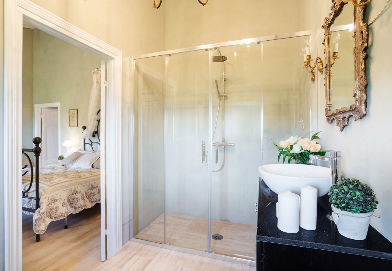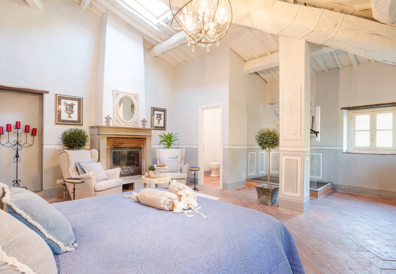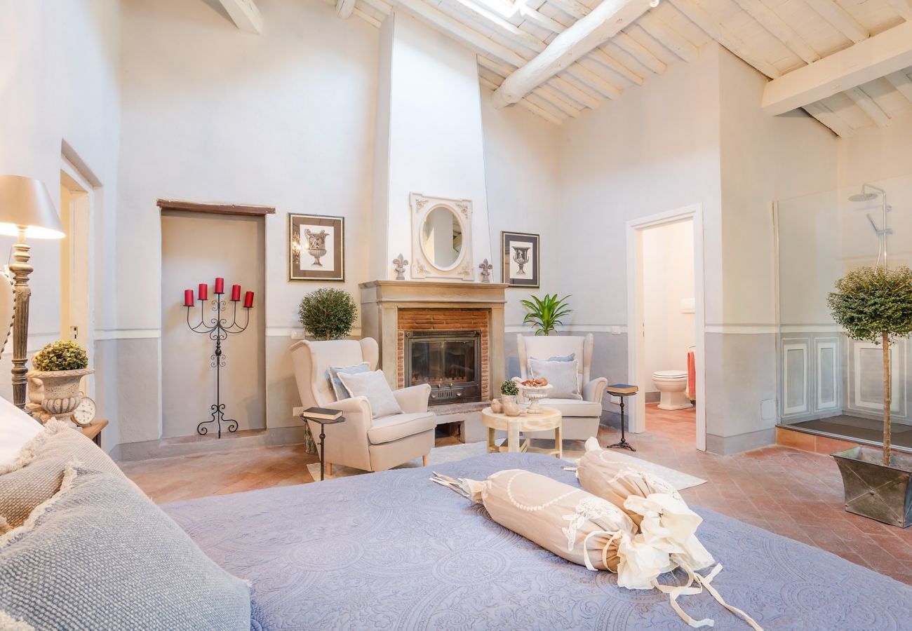 The gorgeously landscaped estate welcomes you with an enchanting pathway flanked by roses, while lovely lemon and olive trees populate the gardens. The big historical tree has been recently cut down unfortunately as the plant got a disease. Right in front of the villa's main entrance, the swimming pool terrace features elegant loungers and parasols on a smooth stone deck overlooking the countryside. Savour a delicious soak in the Tuscan Sun and plunge into the pool for a morning swim. Kindle the stone barbeque grill and enjoy an alfresco meal in the dining pavilion, paired with local wine.
