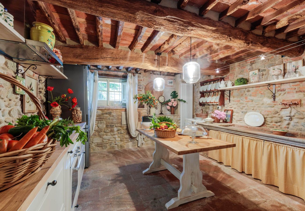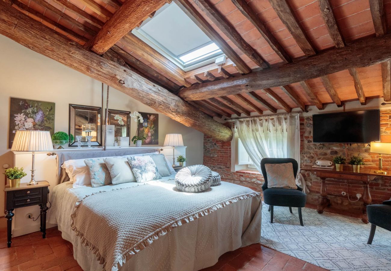 Whether you’re on holiday in the countryside or an Italian honeymoon, the Tuscany region is perfect for a trip spent exploring the sights and sampling local olive oil and wine. This exquisite vineyard-view Stone Farmhouse in Valgiano gazes out on breathtaking views of Lucca. Tuscan Fizz Villa is located along the Wine Road among vineyards and olive groves, only a short drive from the picturesque city center of Lucca, 30 minutes from the nearest beach of Viareggio/Forte dei Marmi, within day-trip distance of many of the historic villages and Tuscan landmarks such as Cinque Terre, Florence, Pisa, San Gimignano, Volterra, Pistoia, Montecatini Terme, Livorno, Bolgheri, Garfagnana and many others and easily reached from the airports in Pisa and Florence. With beautiful alfresco and interior living spaces, five hill-and-valley-view bedrooms, and an excellent location for exploring the Italian Tuscany District, Tuscan Fizz is a superb vacation rental for family reunions, destination wedding guests, and unforgettable vacations with friends along Tuscany’s and Italy's most iconic sites.