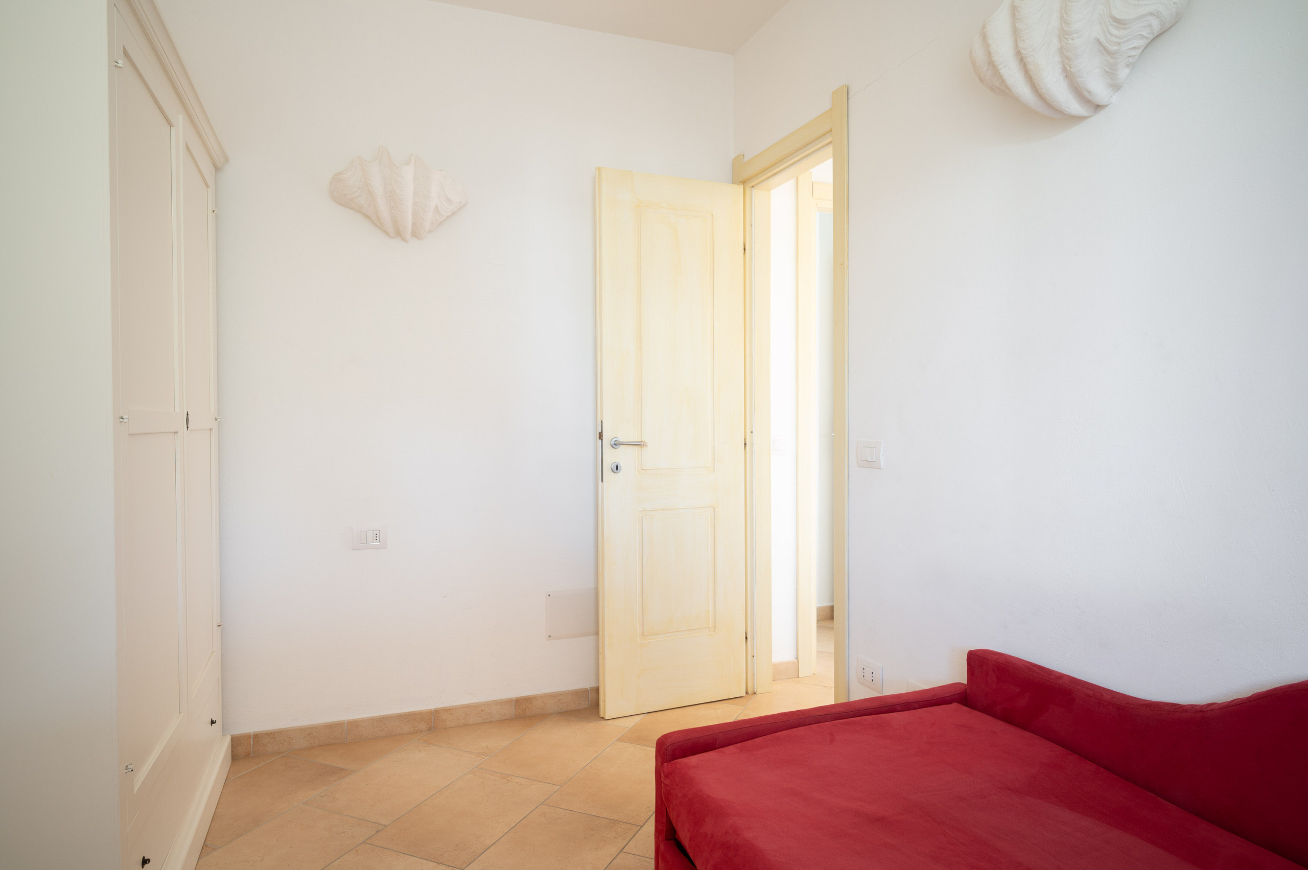 Villa Olive is split across two independent levels, perfect for families or groups of friends seeking both privacy and shared spaces. The ground floor features a living area opening onto the veranda, with an American kitchen, central air conditioning, one double bedroom, one bedroom with a single sofa bed and pull-out bed, and a bathroom with shower. The first floor includes a living area with terrace and sea view, American kitchen, central air conditioning, one double bedroom, one bedroom with single sofa bed and pull-out bed, and a bathroom with shower.