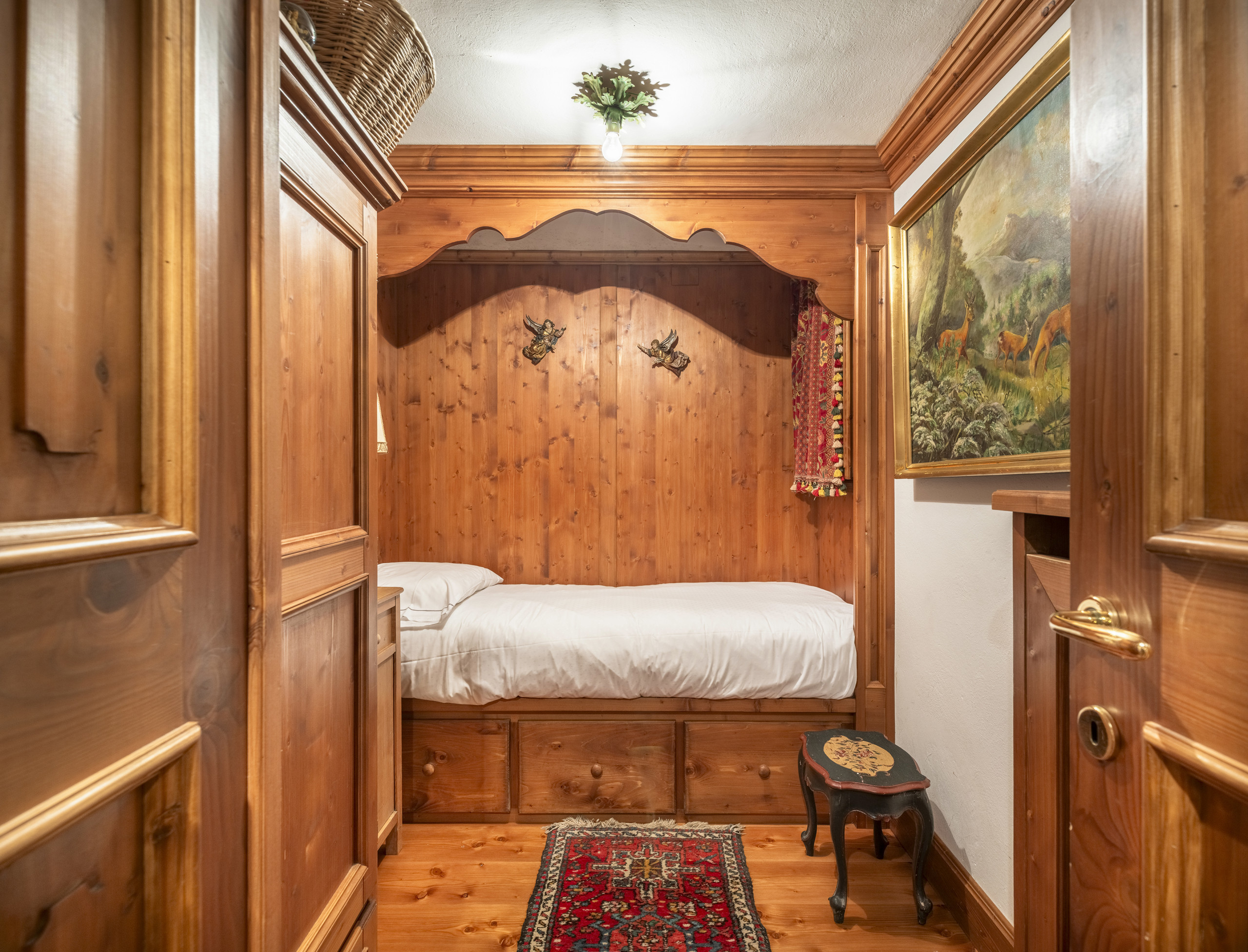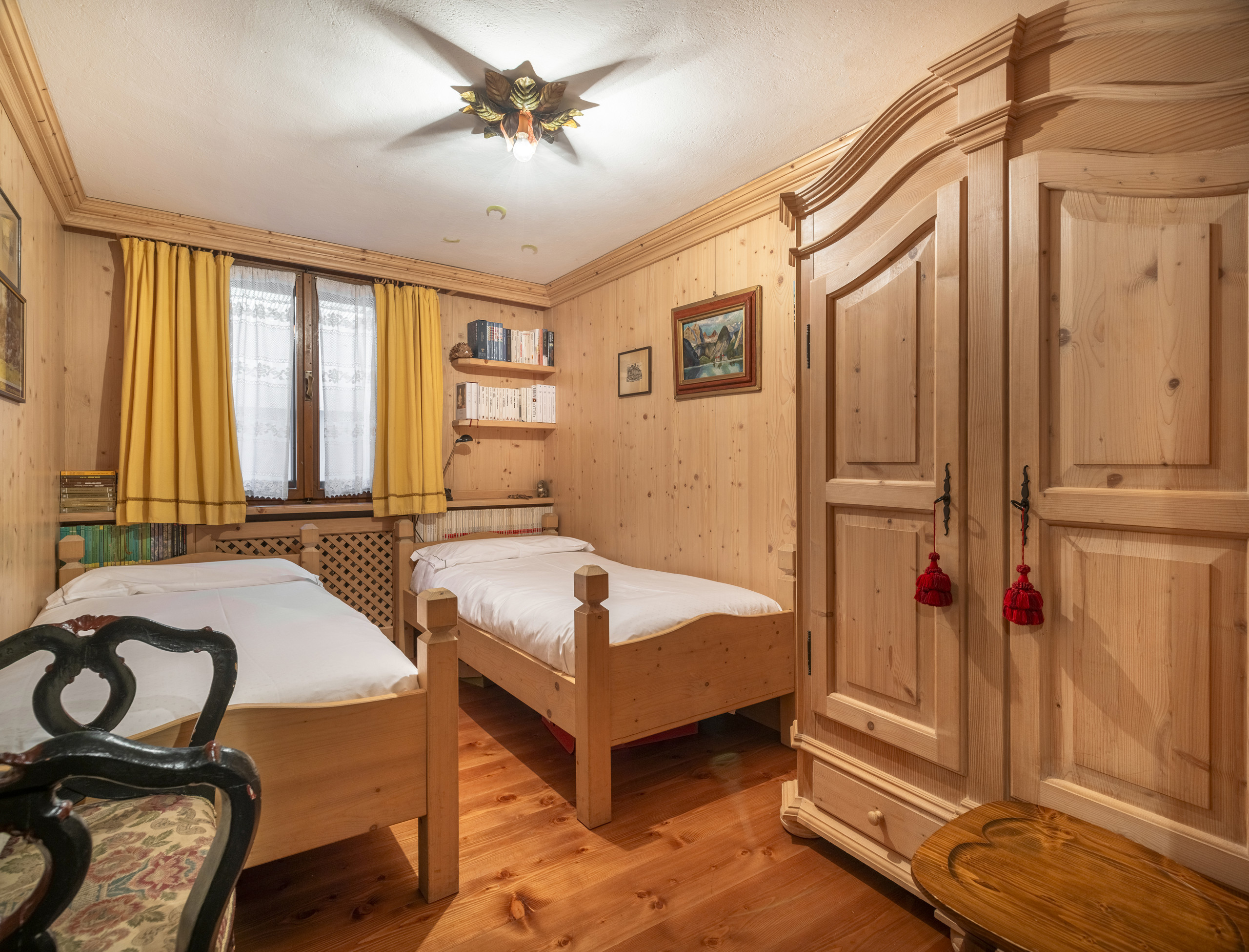 Niché dans la verdure et la tranquillité de la localité de Salieto, à quelques minutes du centre de Cortina d'Ampezzo, cet appartement accueillant au rez-de-chaussée, dans un style ampezzano authentique, offre une atmosphère chaleureuse et accueillante, parfaite pour ceux qui souhaitent vivre la montagne en toute détente. Le logement se compose d'une chambre matrimoniale, de deux chambres avec lits simples, d'une salle de bain et d'un grand salon avec table à manger et cuisine équipée, et dispose d'un parking extérieur réservé. Les intérieurs, soignés dans les détails, rappellent la tradition locale avec des matériaux naturels et des meubles typiques qui créent un environnement élégant et confortable. La position, immergée dans la nature, offre une vue extraordinaire sur les Dolomites et la paix d'un contexte réservé, tout en restant pratique pour les principaux services et attractions de Cortina. Une solution idéale pour les familles ou les groupes d'amis qui souhaitent passer des vacances authentiques entre nature, confort et tradition.
