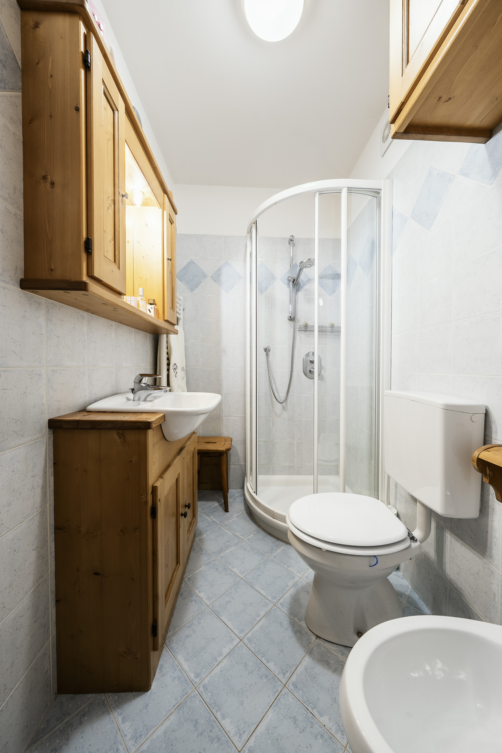 L'appartement dispose également d'un petit espace extérieur avec vue sur les Dolomites et un espace de stationnement extérieur. La cuisine indépendante à induction est équipée d'un réfrigérateur, d'un four, d'un congélateur, d'un lave-vaisselle, de vaisselle/couverts, d'ustensiles de cuisine, d'une cafetière et d'une bouilloire.