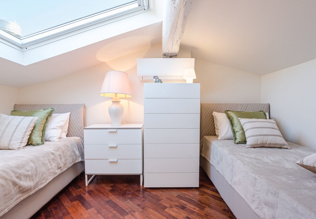 Apartment is a well renovated old apartment near centre of Firenze, walking distance from train station. Apartment has well appointed modern kitchen, new appliances. One bedroom has ensuite bathroom, upstairs bedroom has its own bathroom, and third bplus