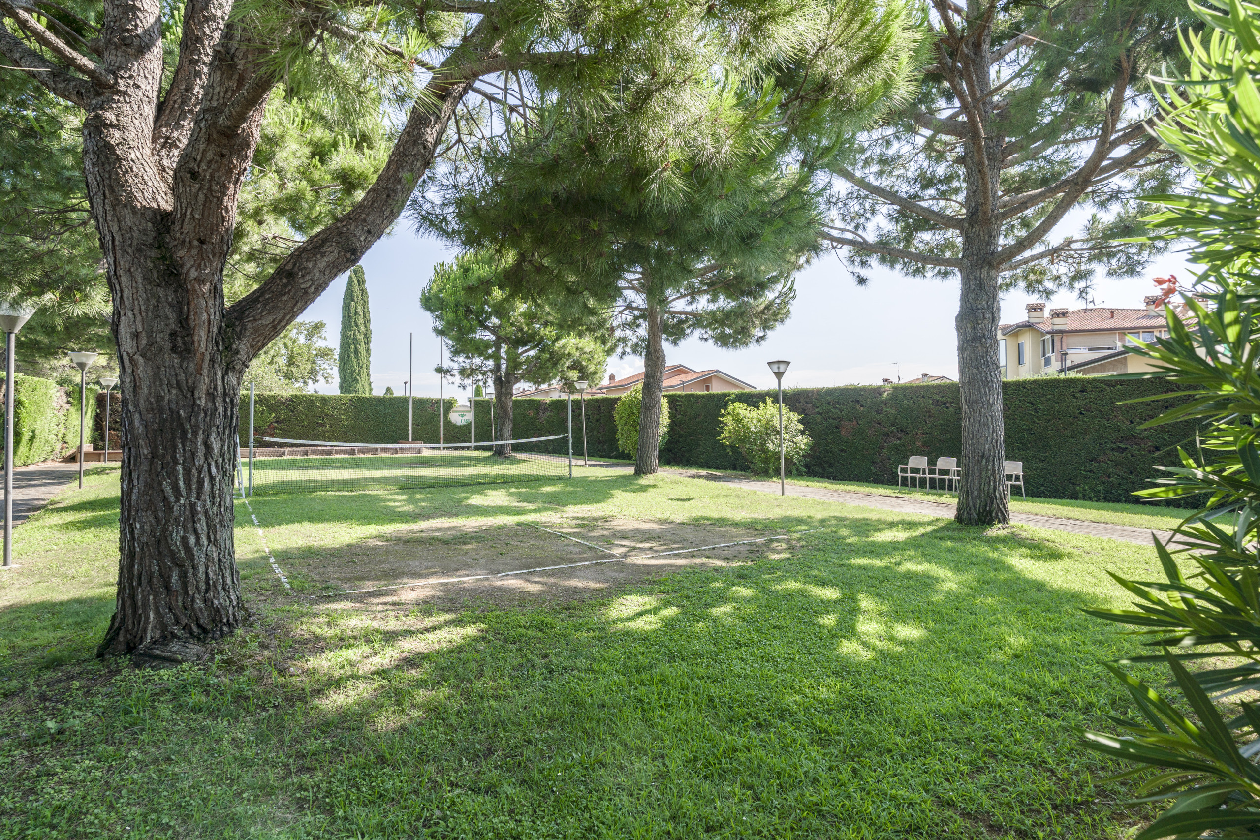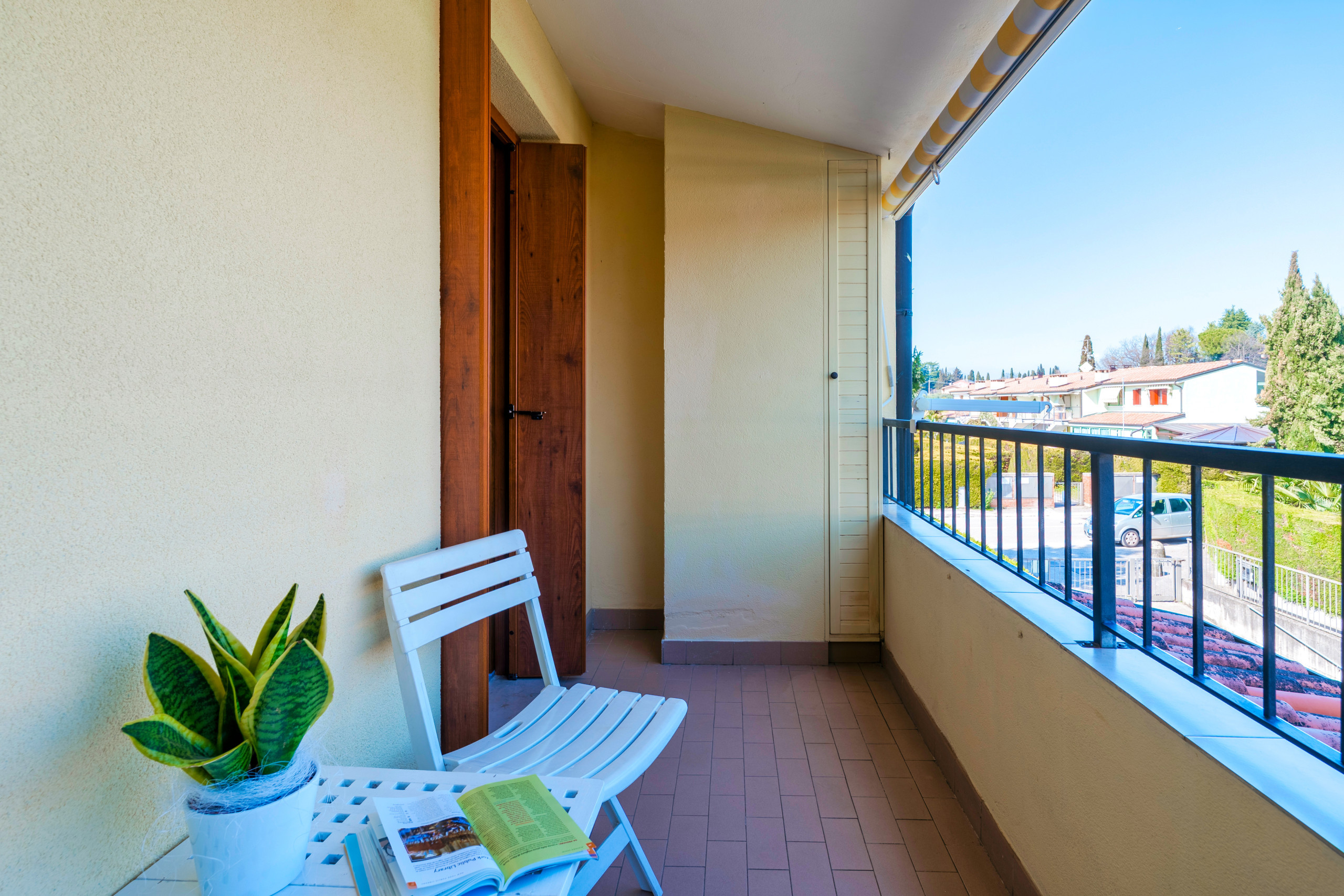 Charmant appartement de deux pièces situé dans la résidence Gardenia à Lazise, à environ 1,2 km du centre de Lazise (15 minutes à pied) et à 1,5 km de la plage. Le contexte résidentiel intimiste de seulement 8 unités dispose d'une piscine (période d'ouverture garantie du 15/05 au 30/09) et d'une grande zone verte. L'appartement entièrement rénové s'ouvre sur un salon accueillant avec vue sur la piscine et une terrasse meublée avec table, chaises et parasol. Le séjour dispose d'un coin cuisine avec réfrigérateur, congélateur, four, plaque de cuisson à gaz, lave-vaisselle, grille-pain, machine à café américain et machine à capsules. Coin détente avec télévision satellite, connexion wifi gratuite, climatisation et confortable canapé-lit. Salle de bain moderne avec cabine de douche et sèche-cheveux à disposition des invités. Grand placard avec dressing et garde-manger. La chambre à coucher, avec accès direct au jardin arrière ombragé meublé avec parasol et chaise longue, dispose d'un grand placard et d'un lit à baldaquin. Place de parking couverte dans le garage. Cave avec buanderie et deux vélos à disposition des invités. Appartement non-fumeurs, animaux domestiques non admis. Nous recommandons cet appartement aux couples ou familles qui recherchent un logement moderne, dans un petit contexte proche du centre historique de Lazise.
