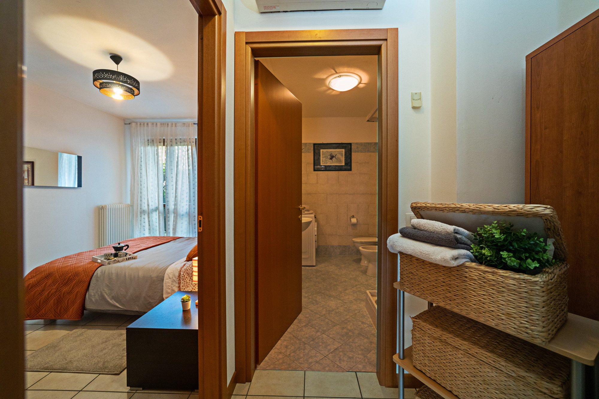 Charmant appartement de deux pièces situé dans la résidence Gardenia à Lazise, à environ 1,2 km du centre de Lazise (15 minutes à pied) et à 1,5 km de la plage. Le contexte résidentiel intimiste de seulement 8 unités dispose d'une piscine (période d'ouverture garantie du 15/05 au 30/09) et d'une grande zone verte. L'appartement entièrement rénové s'ouvre sur un salon accueillant avec vue sur la piscine et une terrasse meublée avec table, chaises et parasol. Le séjour dispose d'un coin cuisine avec réfrigérateur, congélateur, four, plaque de cuisson à gaz, lave-vaisselle, grille-pain, machine à café américain et machine à capsules. Coin détente avec télévision satellite, connexion wifi gratuite, climatisation et confortable canapé-lit. Salle de bain moderne avec cabine de douche et sèche-cheveux à disposition des invités. Grand placard avec dressing et garde-manger. La chambre à coucher, avec accès direct au jardin arrière ombragé meublé avec parasol et chaise longue, dispose d'un grand placard et d'un lit à baldaquin. Place de parking couverte dans le garage. Cave avec buanderie et deux vélos à disposition des invités. Appartement non-fumeurs, animaux domestiques non admis. Nous recommandons cet appartement aux couples ou familles qui recherchent un logement moderne, dans un petit contexte proche du centre historique de Lazise.