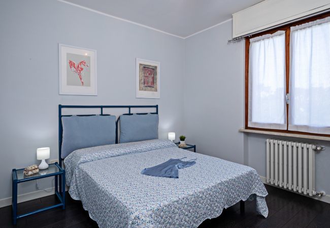 L'appartement est composé d'une zone de vie lumineuse avec coin cuisine équipé d'une plaque de cuisson à gaz, réfrigérateur et congélateur, lave-vaisselle, four électrique/micro-ondes, bouilloire, grille-pain et machine à café. Table en bois de style campagne chic pouvant accueillir jusqu'à 6 personnes. Un canapé-lit matrimonial confortable (recommandé pour un adulte ou deux enfants) et un fauteuil de lecture complètent le salon. Climatisation, télévision satellite et wifi à disposition des invités. Chambre matrimoniale avec dressing, petite chambre avec lit superposé et dressing. Salle de bain avec fenêtre, cabine de douche et machine à laver pratique. Une place de parking couverte dans le complexe disponible, manœuvre d'accès avec espace limité (largeur 235 cm, hauteur 200 cm, profondeur 600 cm). Cave où il est possible de garer les vélos en toute sécurité, transats à disposition des invités pour une utilisation en piscine (bonnet obligatoire - utilisation de la piscine garantie du 15/06 au 15/09 - ouverte uniquement pendant les heures de présence du maître-nageur 11h00/13h00 et 15h30/19h30). Animaux de compagnie non admis, appartement pour non-fumeurs.
