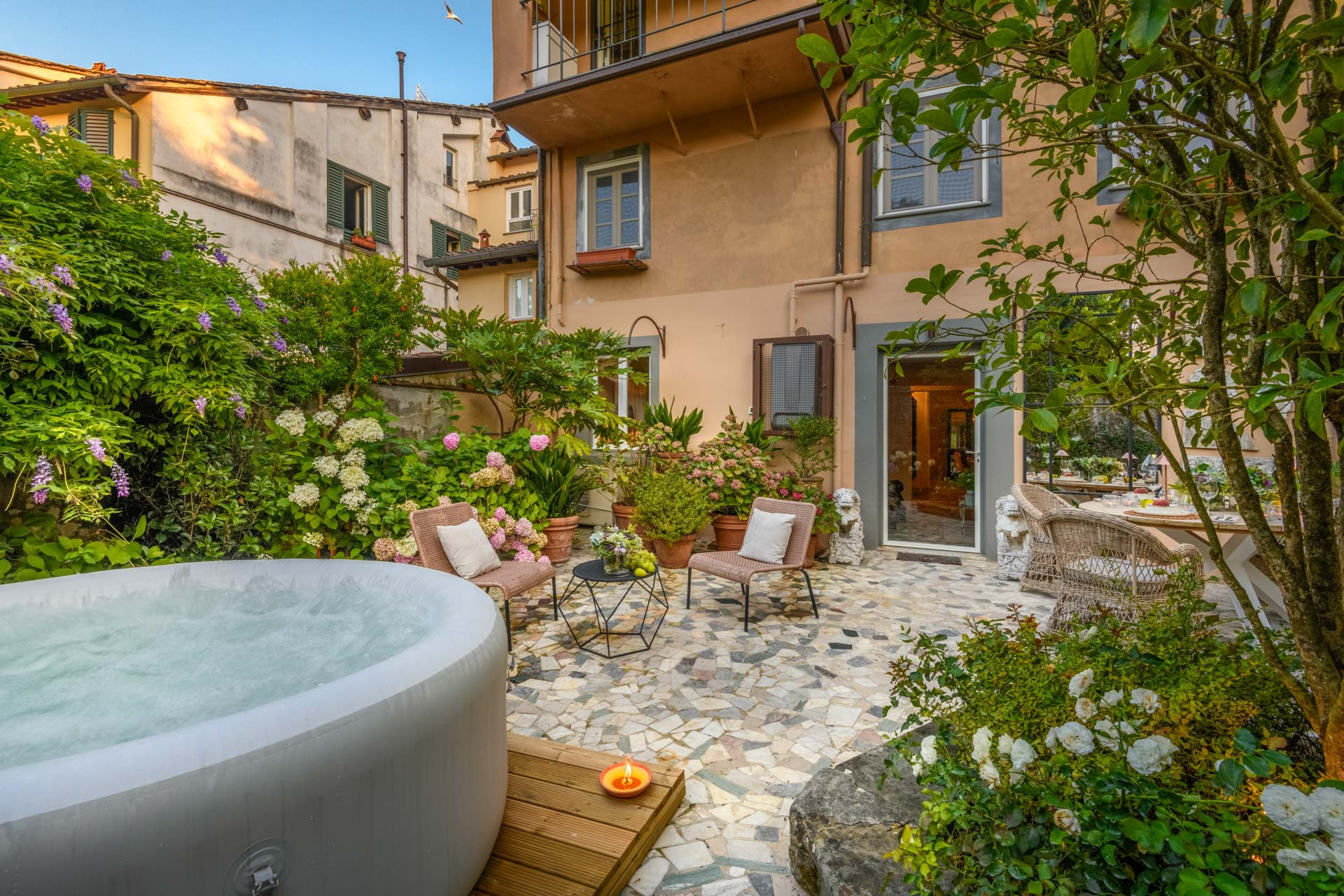 We really enjoyed our stay at this elegant and well-appointed property. There were a few hiccups with communication and check-in by the property management company but the property itself is excellent and we would definitely stay here again. It is very centrally located in Lucca - not too far a walk from the Mazzini parking garage and close to many excellent restaurants, grocery stores, bakeries, and shopping yet a quiet location. It is on the ground floor. The apartment is very large and the photos are very accurate. A very nice courtyard with a special Jacuzzi in it.. The kitchen is a nice size with an eat-in table, a brand new refrigerator and a gas stove, microwave, etc. - well-equipped.. All rooms are generously sized and the bedding and mattresses are quite comfortable. Wi-Fi was speedy. Great base for exploring Lucca and the region. Recommended.