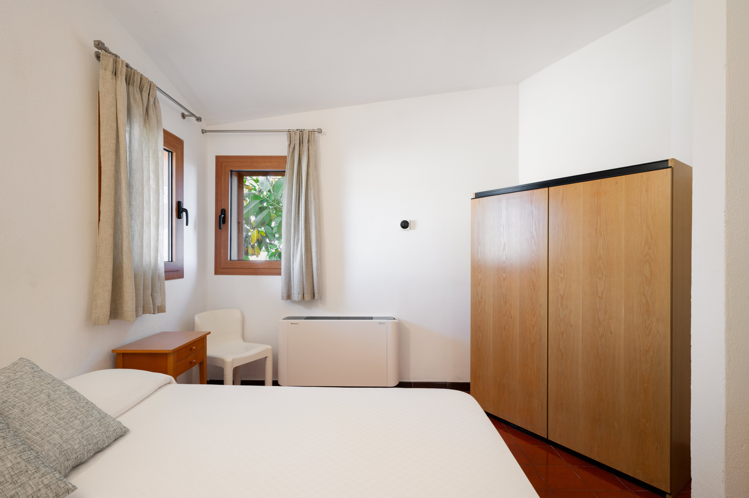 Wi-Fi Climatisation dans toutes les pièces Cuisine américaine entièrement équipée Terrasse privée Piscine partagée avec zone enfants Parking privé Chambre avec deux lits doubles TV