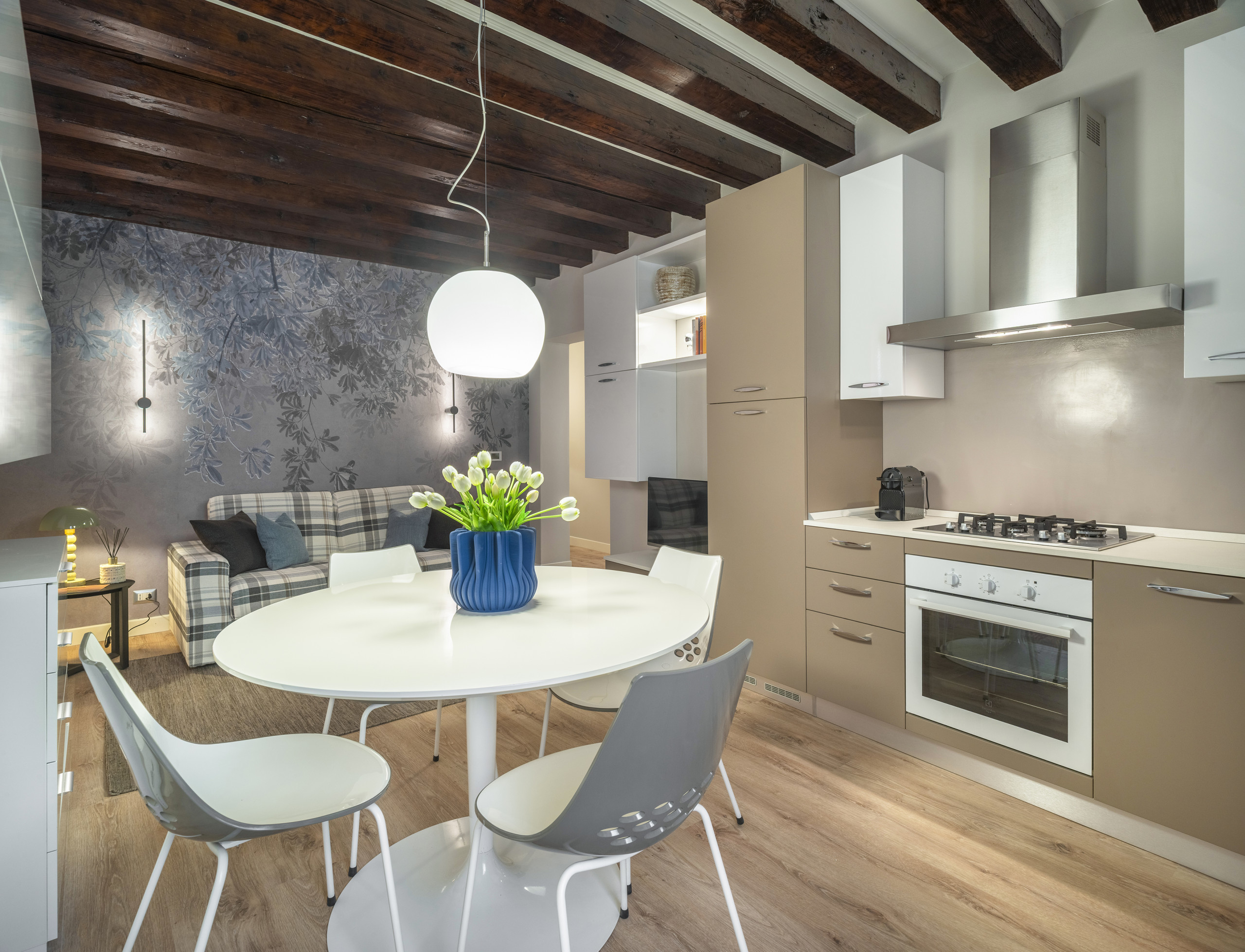 À noter : l'accès à l'appartement se fait par un escalier intérieur assez raide, caractéristique typique des habitations vénitiennes. Il est donc conseillé de faire preuve de prudence pour les personnes à mobilité réduite ou avec des bagages encombrants.