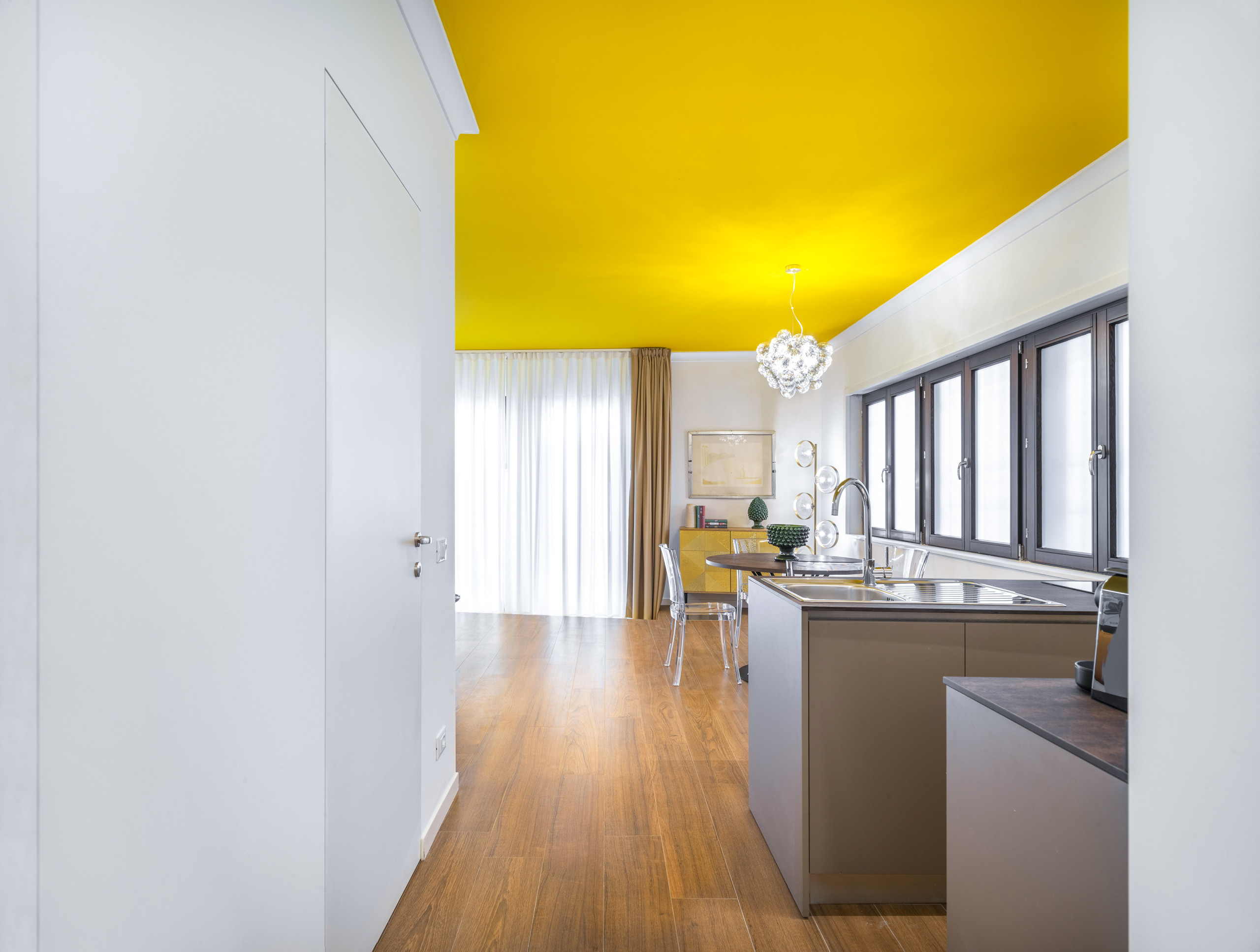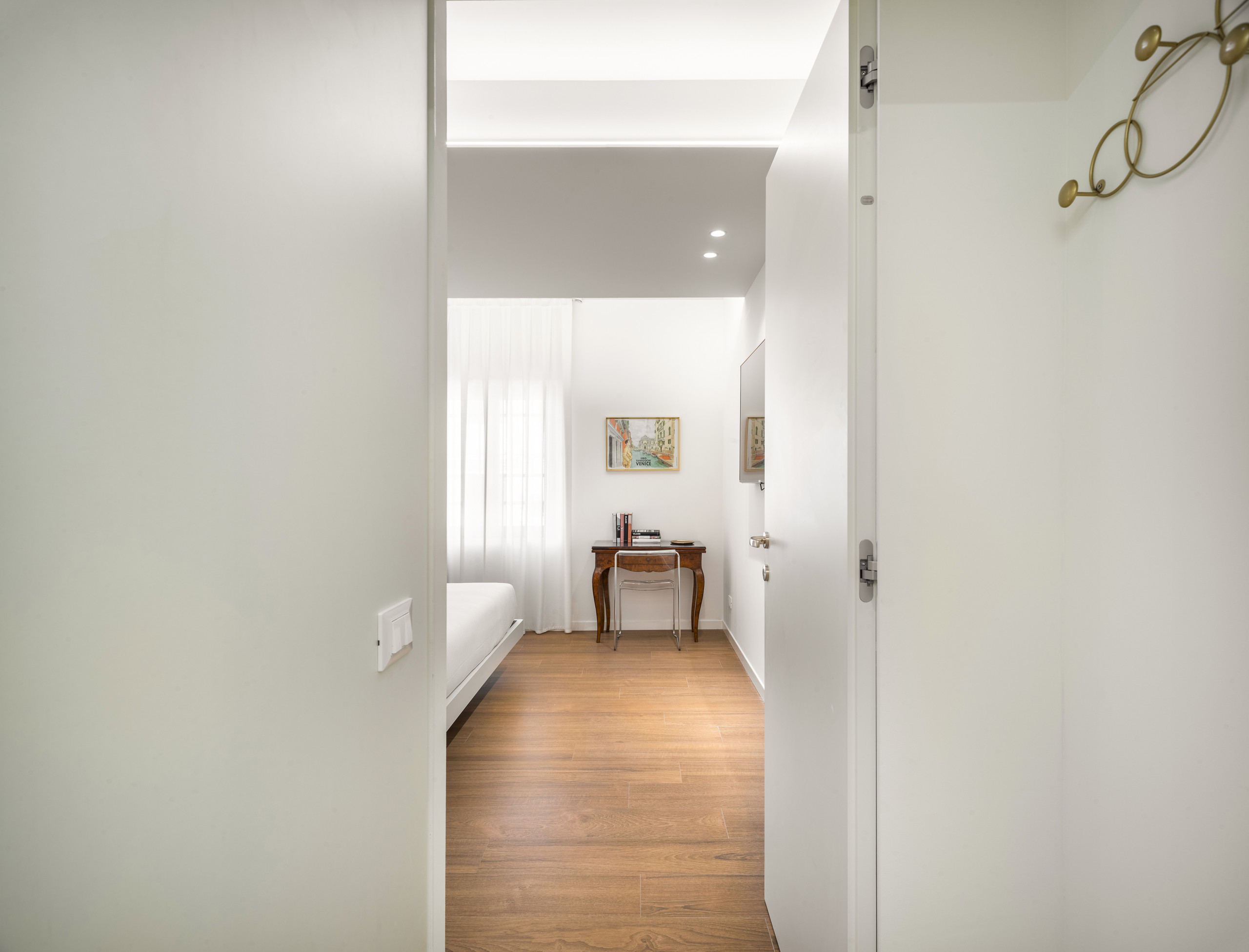 L'appartement combine design contemporain et détails vénitiens typiques, offrant une atmosphère intime et fonctionnelle.
