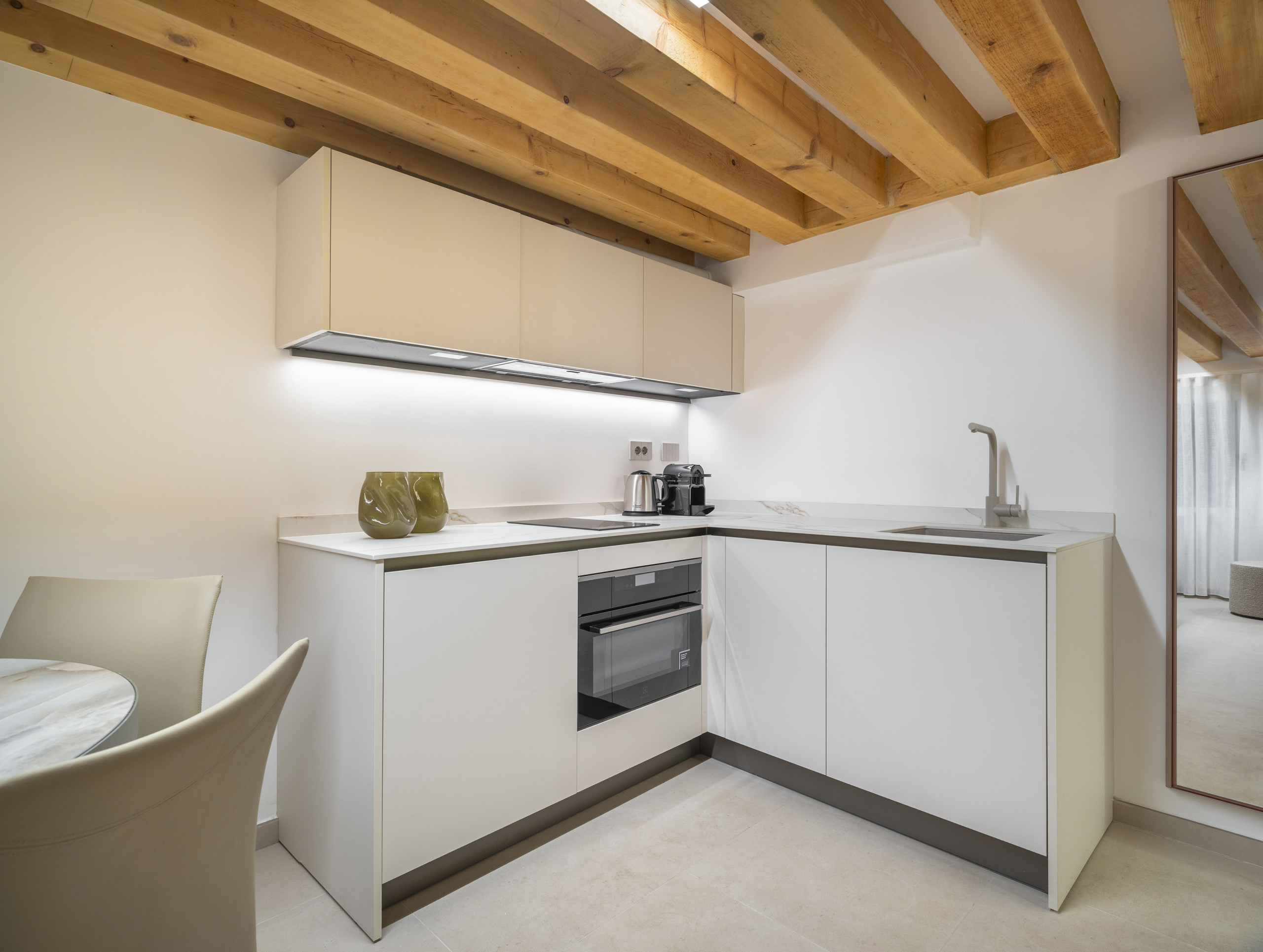 L'appartement est composé d'un salon avec canapé-lit, d'un coin cuisine, d'une salle de bain avec douche et d'une chambre matrimoniale.