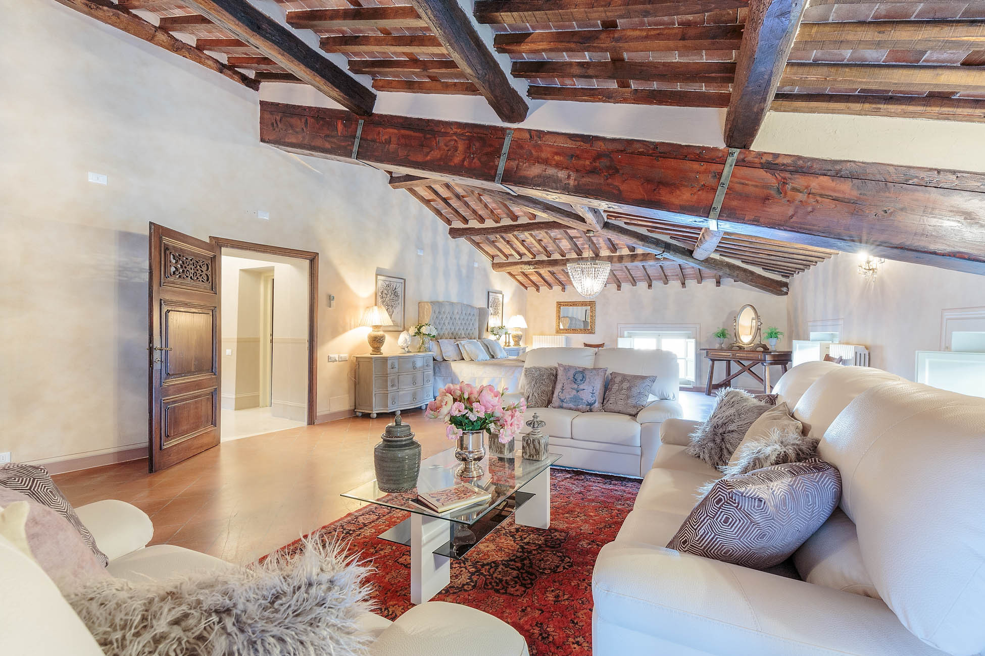 The kitchen is superbly equipped for the contemporary cook and serves a lovely breakfast corner opening to the patio. The villa's ten bedrooms are beautifully furnished in a classic Tuscan style that feels at once timeless and fresh.