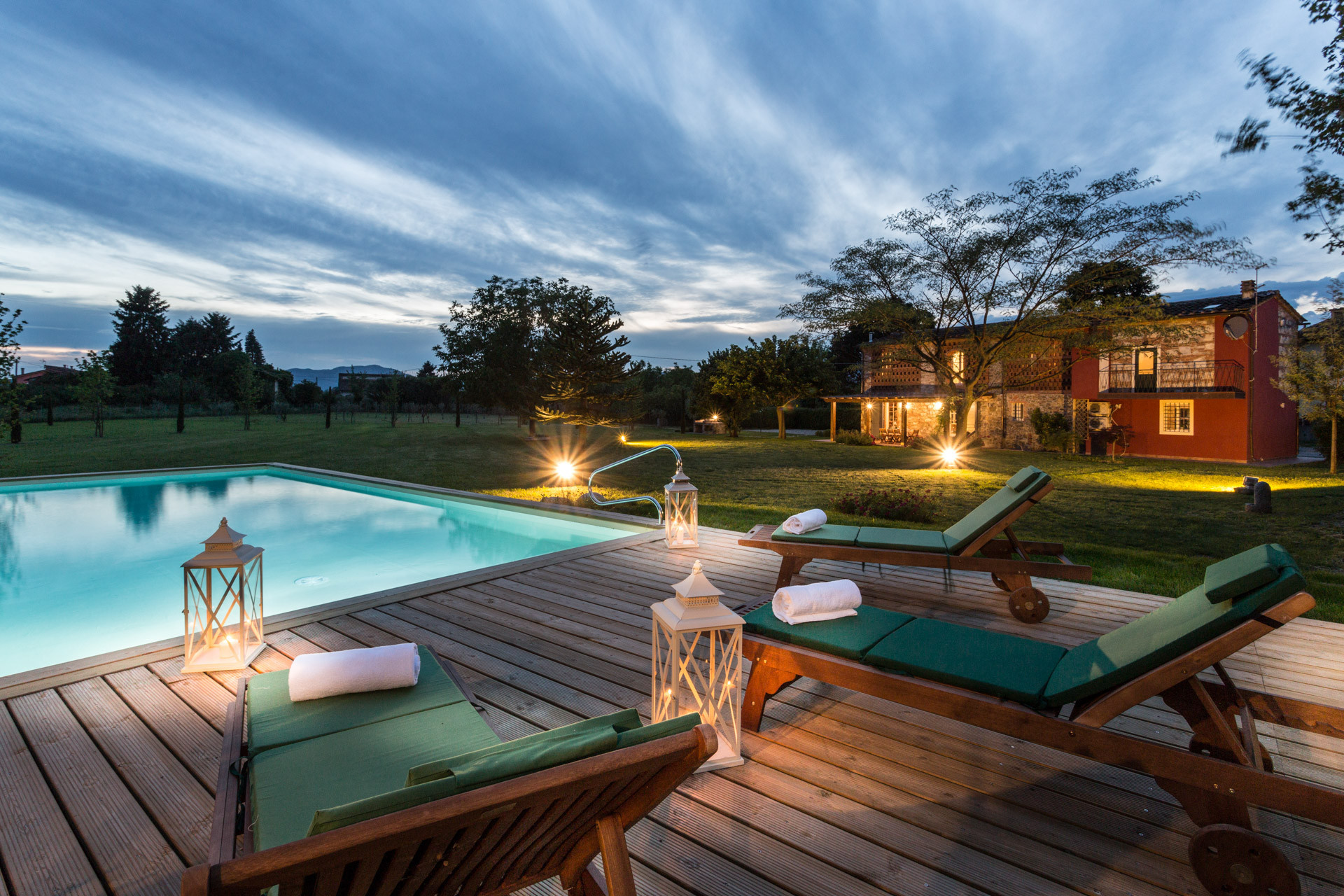 Spending a holiday in an ancient farmhouse in Tuscany is the perfect solution if you want to experience a relaxing stay, during which you will be able not only to visit great art heritage cities, but also to find out the beauty of a unique landscape, that is the Tuscan countryside with its rolling green hills, cypresses and stone country houses. Last summer, a new holiday home was created along the banks of the river Serchio: VILLA SUL FIUME. This is the perfect place to enjoy wonderful hikes discovering beautiful places and amazing views. This wonderful and luxurious stone country house is located in a quiet area and is surrounded by a huge Italian garden. Nevertheless, it is only a few steps away from the WALLS OF LUCCA (an easy 10 mins walk away). This farmhouse has been accurately refurbished, maintaining the charm of an ancient Tuscan country villa with its traditional raftered ceiling, terracotta flat tiles and stone walls. Additionally, VILLA SUL FIUME is characterized by a spacious and tastefully furnished living space.