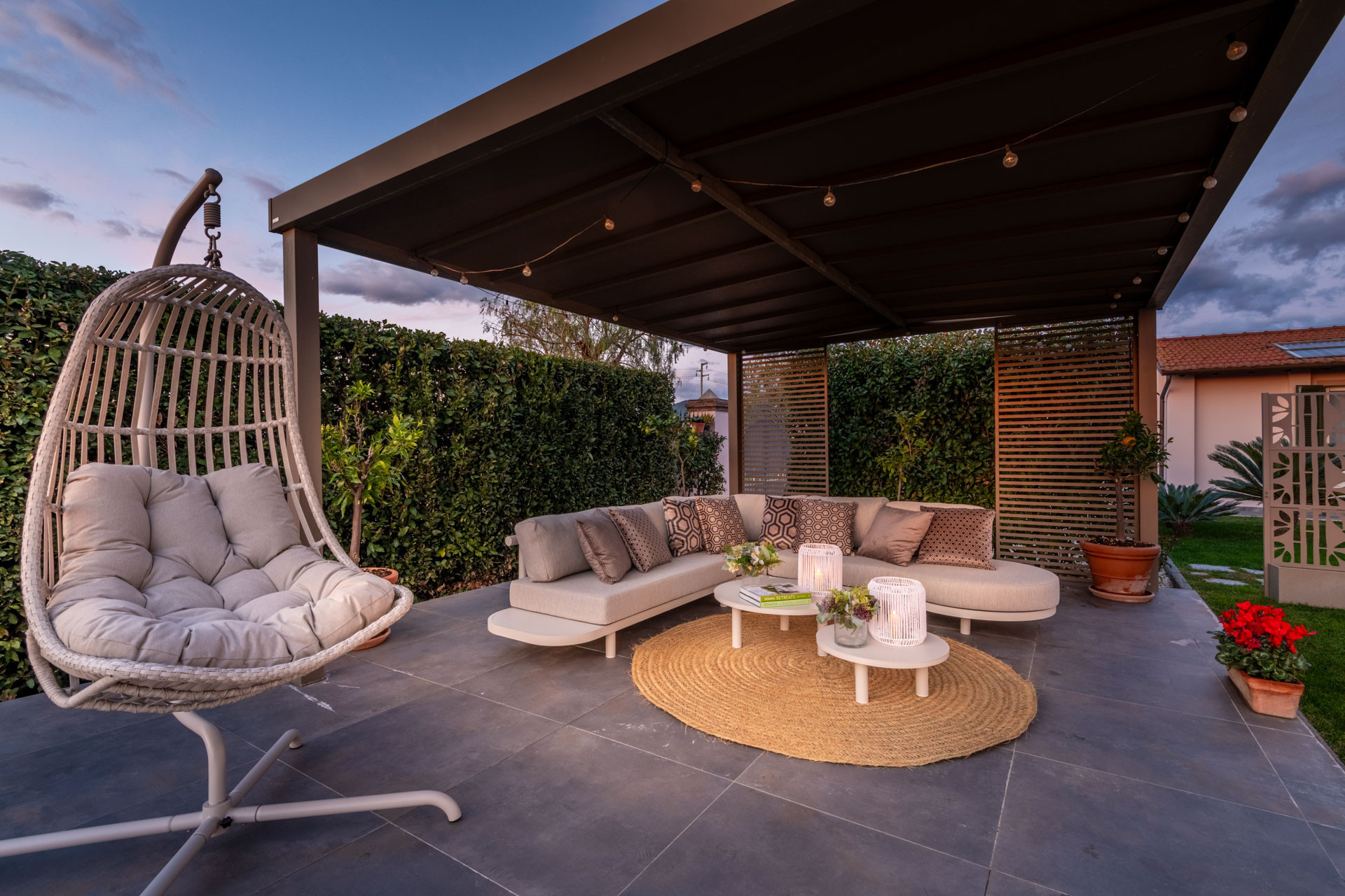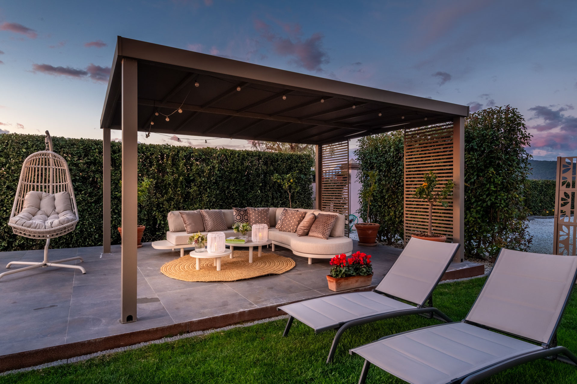 Elle dispose de jardin, mobilier de jardin, clôture, 30 m² de terrasse, lave-linge, barbecue, fer à repasser, accès internet (wifi), sèche-cheveux, balcon, chauffage pompe à chaleur, climatisation dans tout le logement, piscine privée, parking extérieur même bâtiment, 1 Télévision.