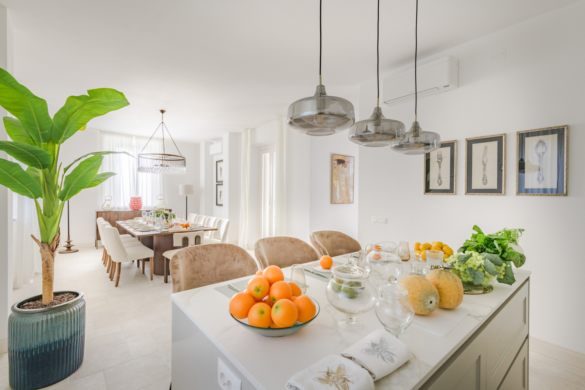 La cuisine indépendante, à induction, est équipée avec réfrigérateur, micro-ondes, four, congelateur, lave-vaisselle, vaisselle/couvert, ustensiles/cuisine, cafetière, grille pain, bouilloire et presse-agrumes.